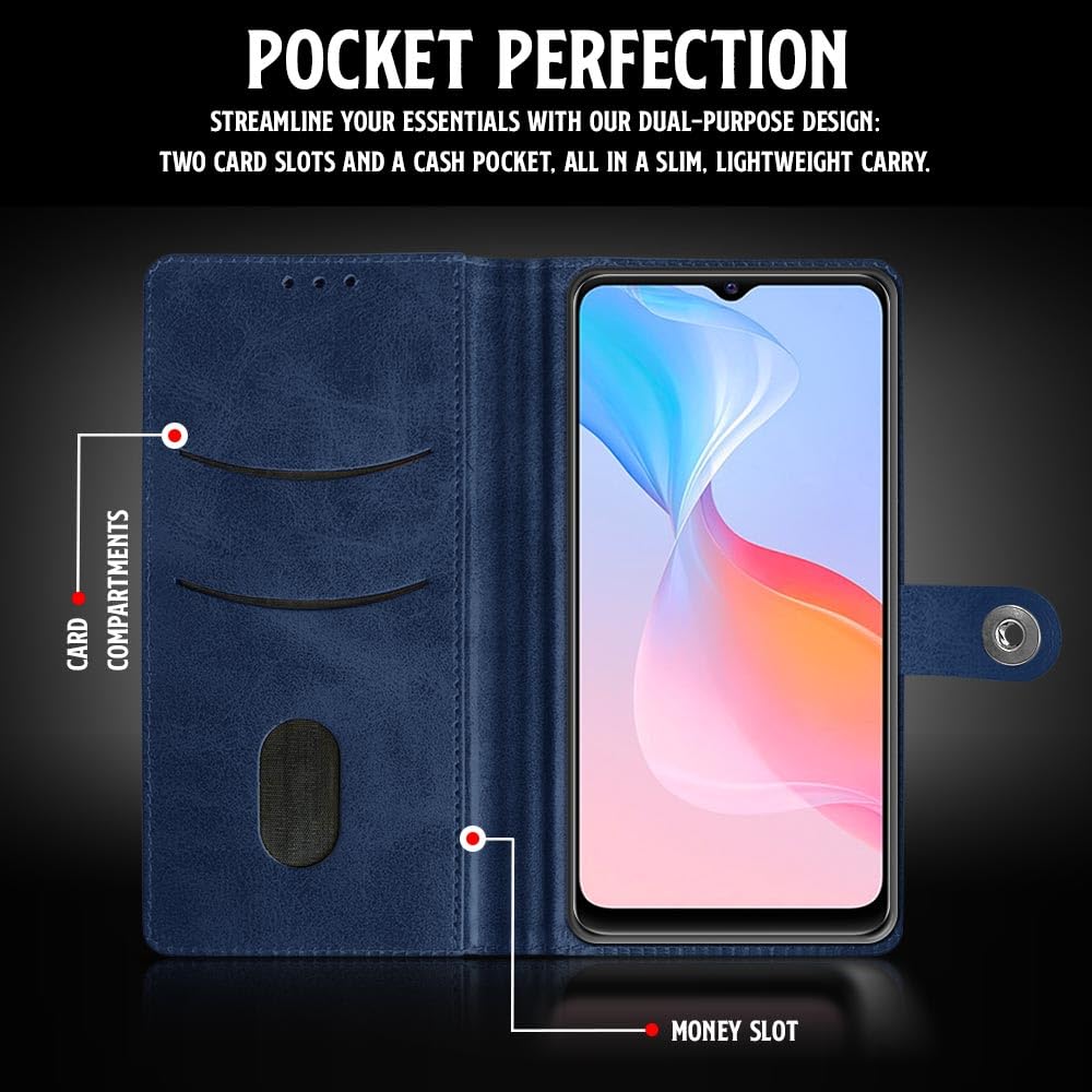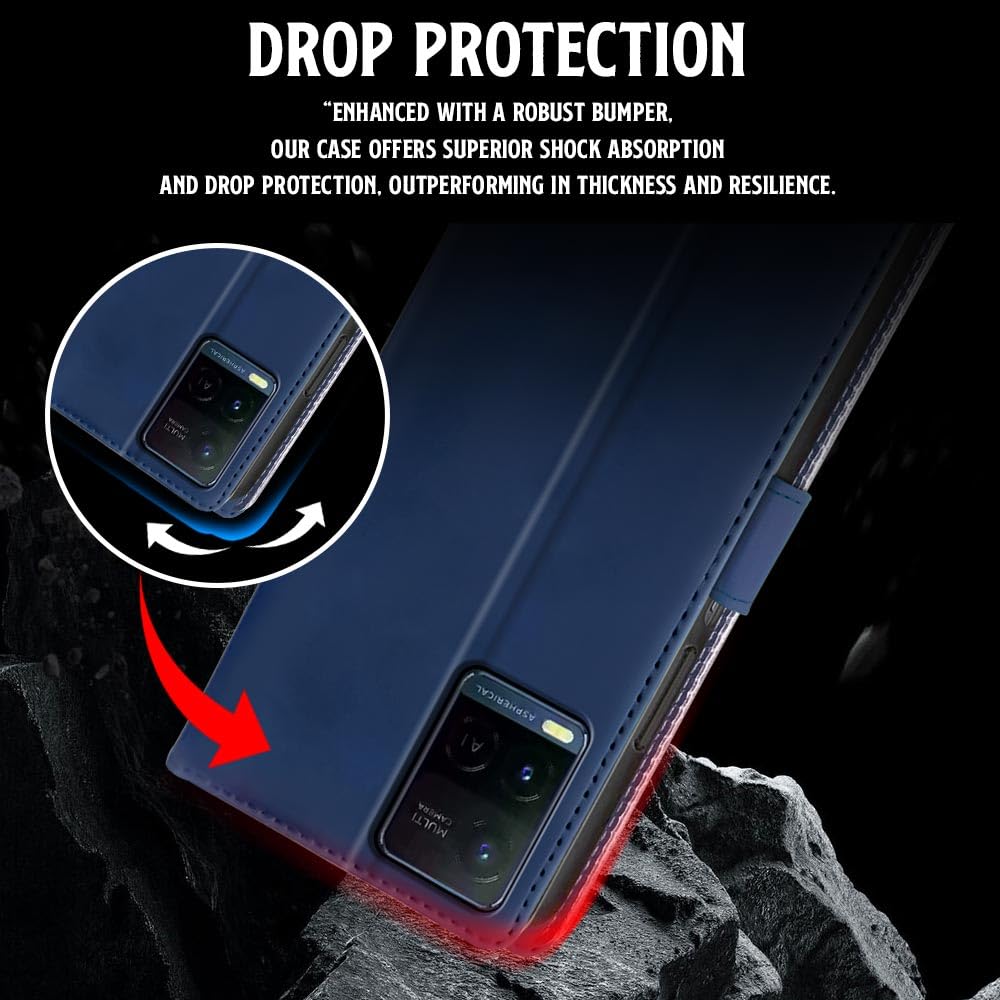 Shock Proof Flip Cover Back Case for Vivo Y21 | Magnetic Wallet Leather Case with Stand