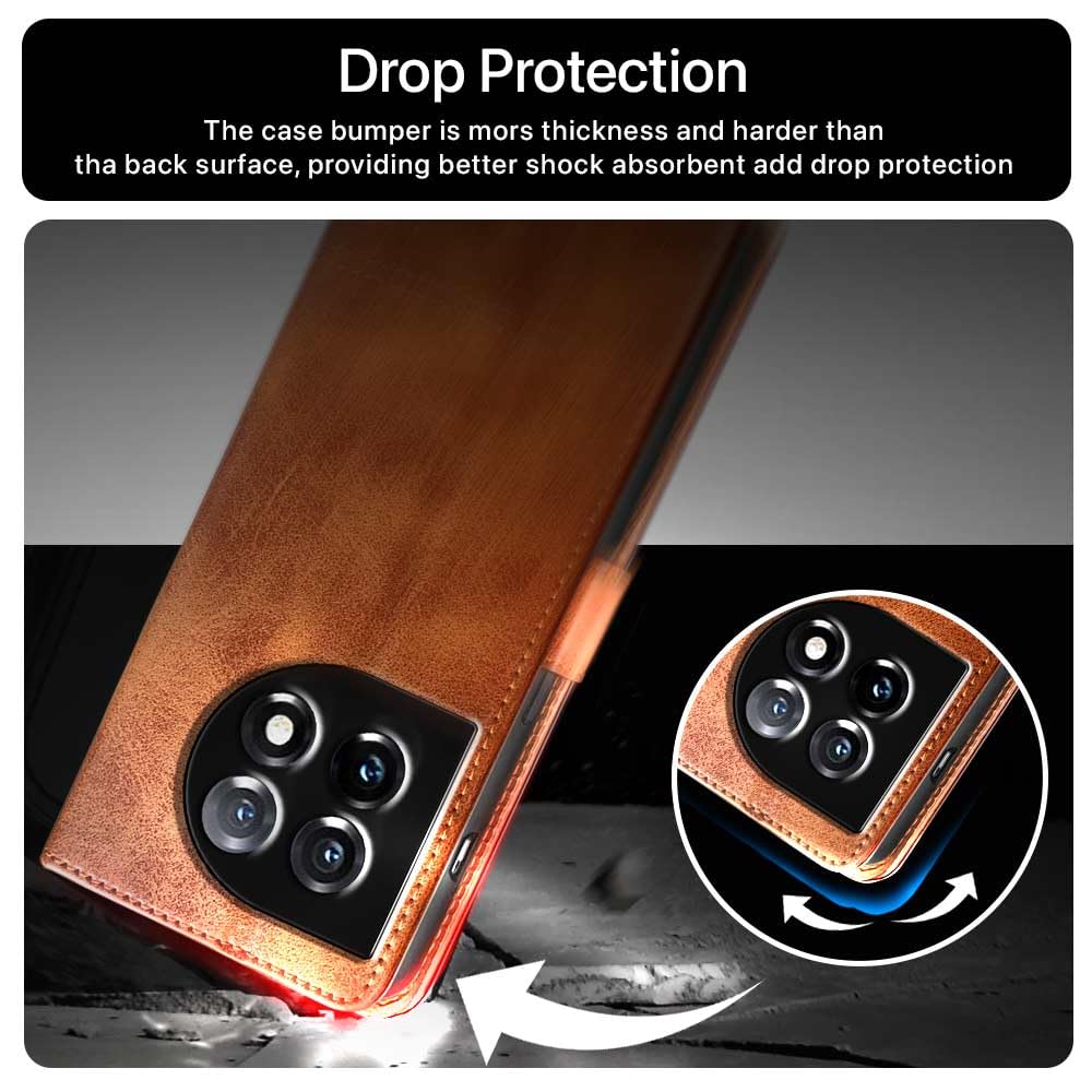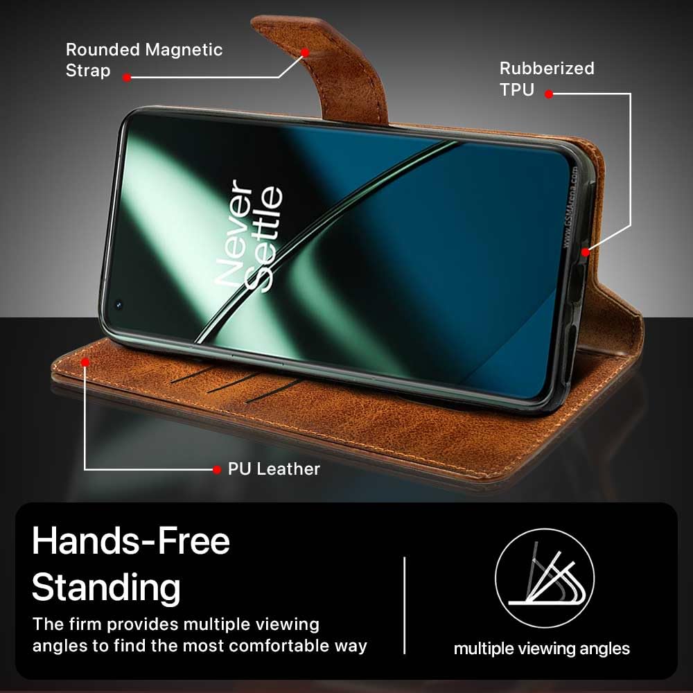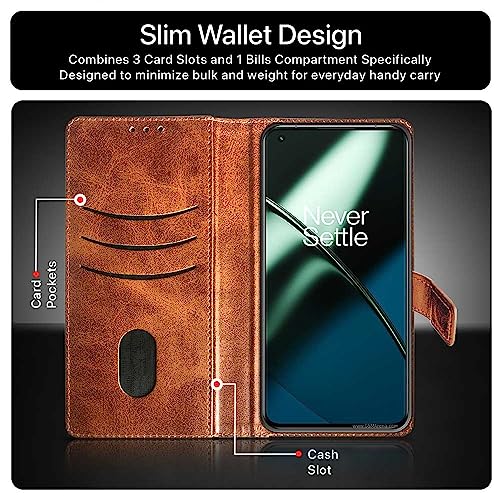 Shock Proof Flip Cover Back Case for 1+ Oneplus 11 5G | Magnetic Wallet Leather Case with Stand