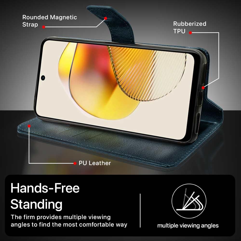 Buy premium shock proof flip cover back case for motorola moto g73 5g. Leather finish with magnetic flip closure, wallet pockets and stand support. Durable protection against drops and scratches with a perfect fit for motorola moto g73 5g.