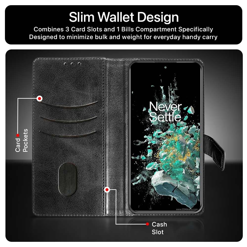 Shock Proof Flip Cover Back Case for 1+ Oneplus 11R 5G | Magnetic Wallet Leather Case with Stand