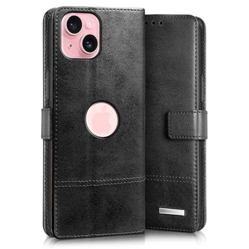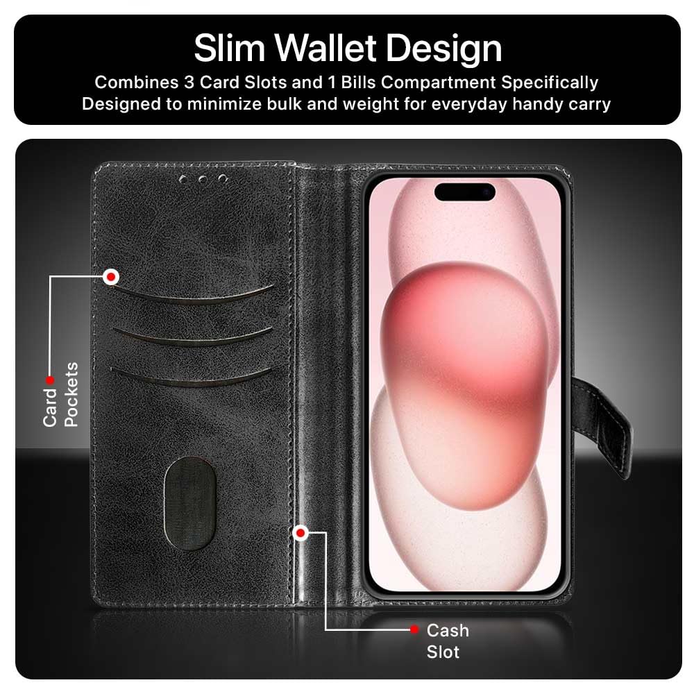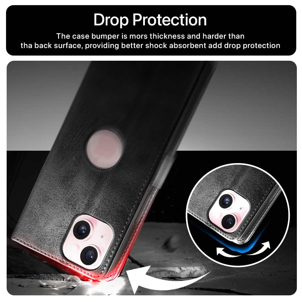 Shock Proof Flip Cover Back Case for Apple Iphone 15 | Magnetic Wallet Leather Case with Stand