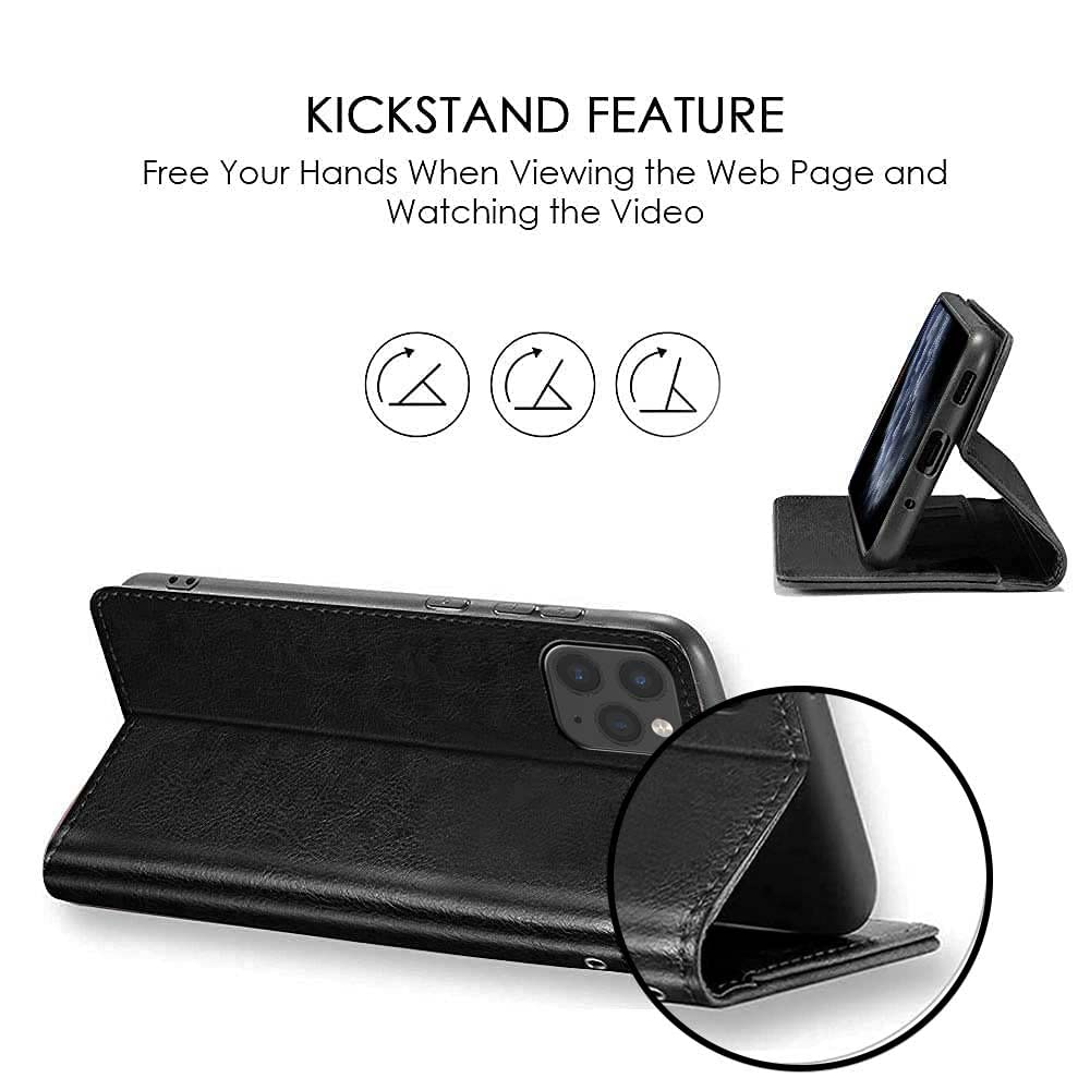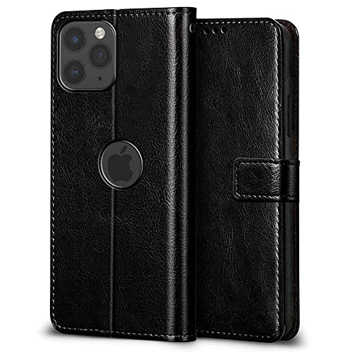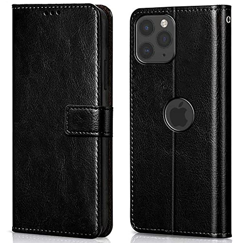Shock Proof Flip Cover Back Case for Kelpuj Shockproof Flip Case Back Cover Compatible With Apple Iphone 11 Pro (Flexible | Leather Finish | Card Pockets Wallet & Stand | Black) | Magnetic Wallet Leather Case with Stand