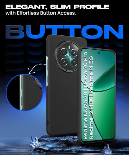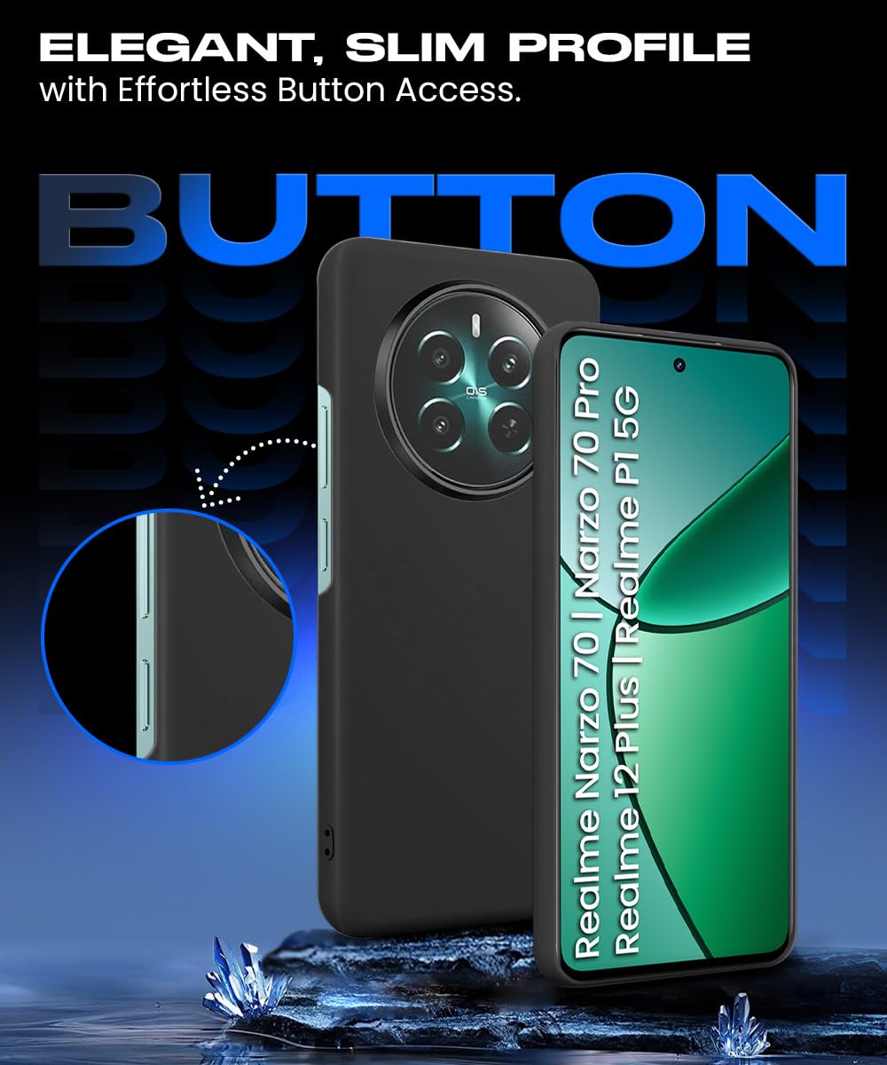 kelpuj Slim Frameless Back Cover for Realme Narzo 70 | Narzo 70 Pro | Realme 12 Plus | P1 5G | Ultra Thin Lightweight Design & Camera Protection | Soft Matte Silicone Flexible Mobile Case (Black)
