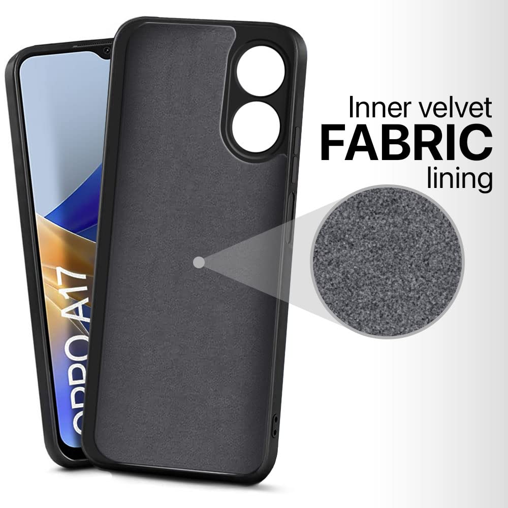 kelpuj Slim Ultra Soft Rubberised Back Cover for Oppo A17 | Inner Velvet Fabric Lining | Matte Silicone Flexible Camera Protection Back Case Black