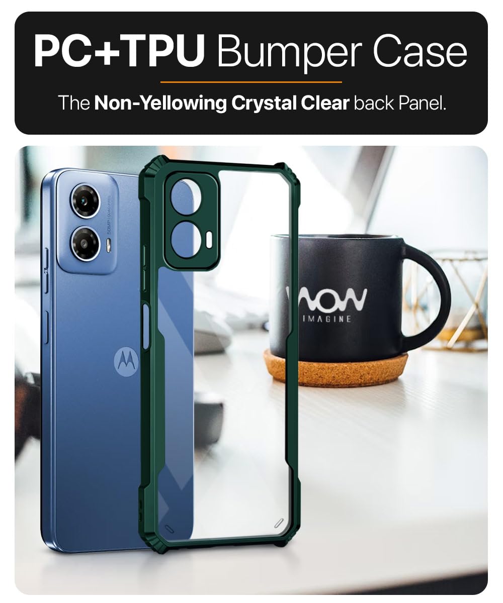 Thermoplastic Polyurethane Shock Proof Clear Protective Back Case For Motorola Moto G34 5G-Airedge Technology|360 Degree Camera Protection|Transparent Hybrid Back Case Mobile Cover-Green is designed with premium quality materials to provide superior protection, durability, and style for your smartphone. It offers a perfect balance between functionality and aesthetics, ensuring your device stays safe from scratches, impacts, and daily wear. Engineered with precision, it features accurate cutouts for ports, buttons, and cameras, making it highly convenient for everyday use. The slim and lightweight design ensures that your device retains its sleek profile without adding unnecessary bulk. Whether it is a nano film tempered glass, a hybrid back case, or a camera lens protector, each product is created with attention to detail to enhance the user experience and extend the life of your smartphone. The material used ensures long-lasting clarity, anti-scratch performance, and resistance against fingerprints and smudges. It is the ideal choice for users who want both style and substance in their smartphone accessories. This product from KELPUJ reflects innovation and craftsmanship, making it a reliable accessory that safeguards your investment while maintaining modern appeal.