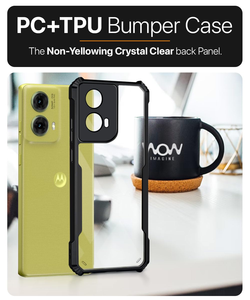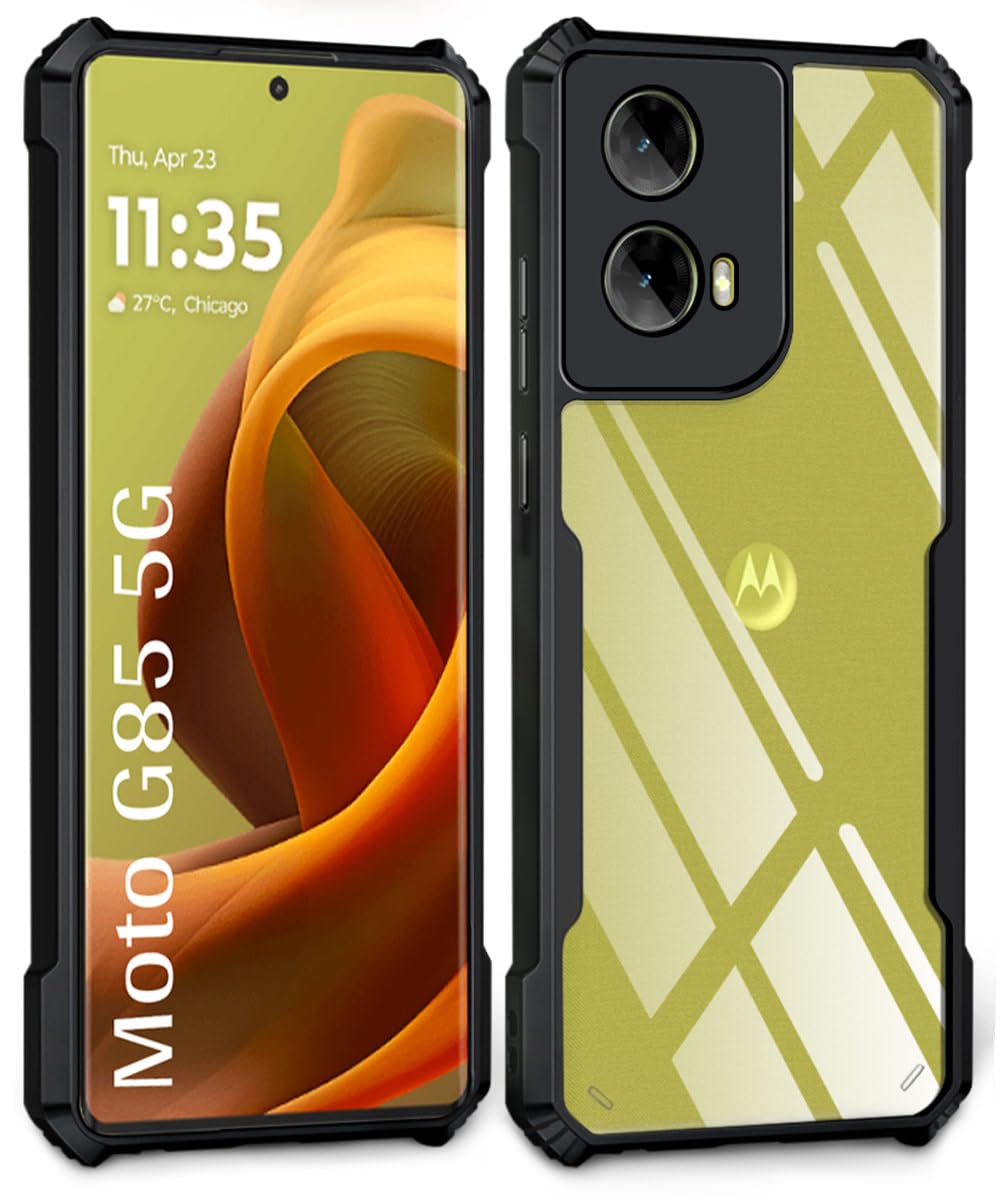 Thermoplastic Polyurethane Shock Proof Clear Protective Back Case For Motorola Moto G85 5G-Airedge Technology|360 Degree Camera Protection|Transparent Hybrid Back Case Mobile Cover-Black is designed with premium quality materials to provide superior protection, durability, and style for your smartphone. It offers a perfect balance between functionality and aesthetics, ensuring your device stays safe from scratches, impacts, and daily wear. Engineered with precision, it features accurate cutouts for ports, buttons, and cameras, making it highly convenient for everyday use. The slim and lightweight design ensures that your device retains its sleek profile without adding unnecessary bulk. Whether it is a nano film tempered glass, a hybrid back case, or a camera lens protector, each product is created with attention to detail to enhance the user experience and extend the life of your smartphone. The material used ensures long-lasting clarity, anti-scratch performance, and resistance against fingerprints and smudges. It is the ideal choice for users who want both style and substance in their smartphone accessories. This product from KELPUJ reflects innovation and craftsmanship, making it a reliable accessory that safeguards your investment while maintaining modern appeal.