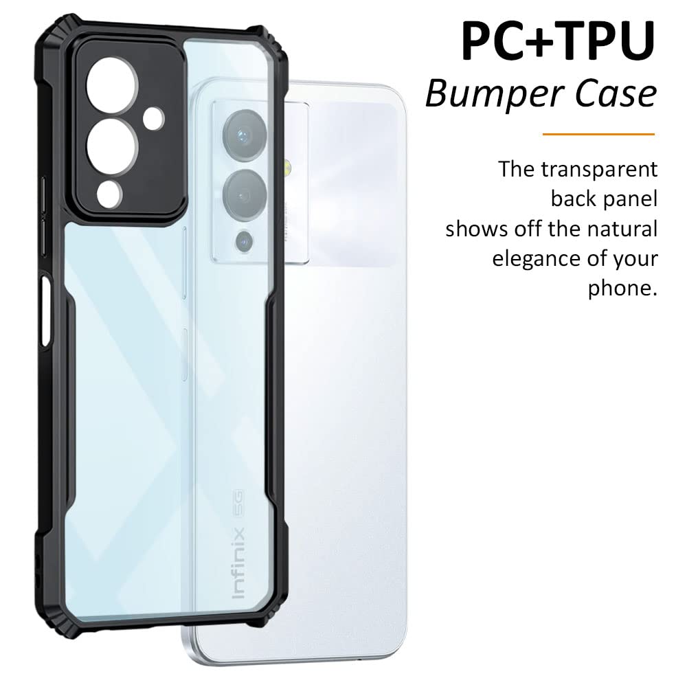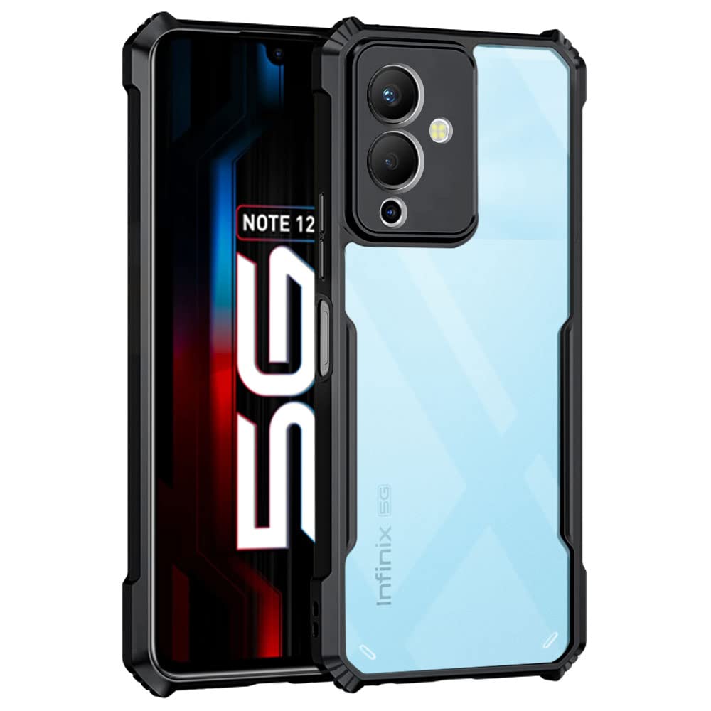 kelpuj TPU+PC Shock Proof Clear Protective Back Case for Infinix Note 12 5G – Airedge Technology | 360 Degree Camera Protection | Transparent Hybrid Back Case Mobile Cover – Black