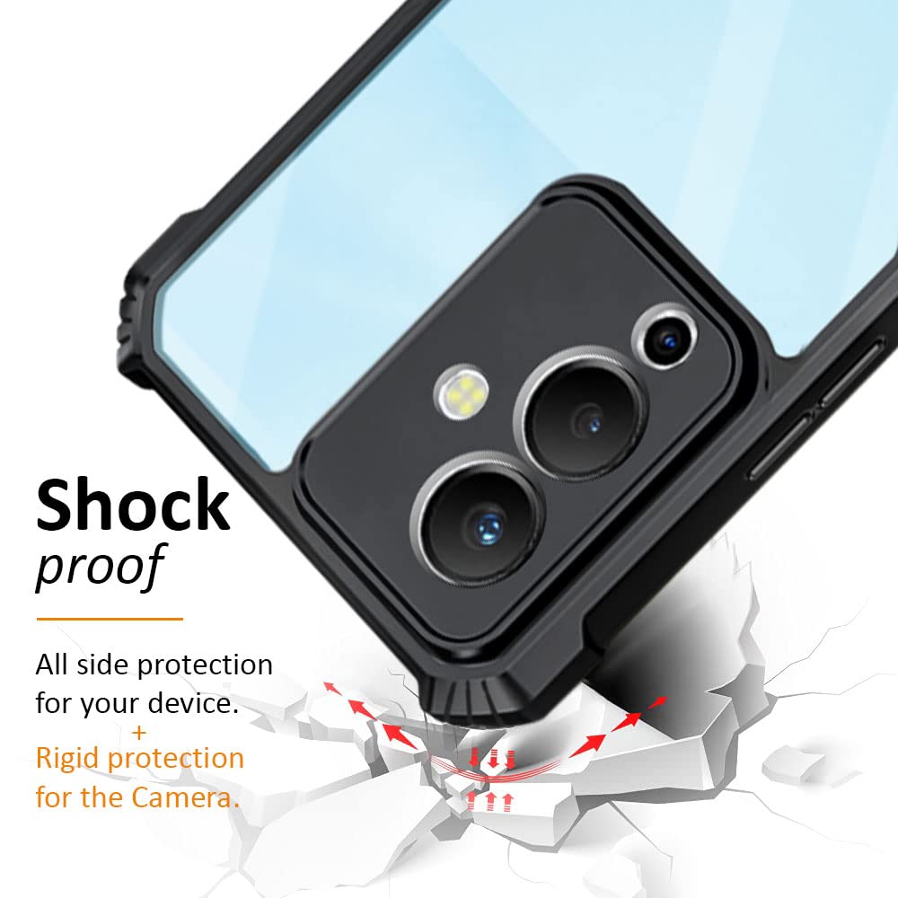 TPU+PC Shock Proof Clear Protective Back Case For Infinix Note 12 5G – Airedge Technology | 360 Degree Camera Protection | Transparent Hybrid Back Case Mobile Cover – Black is designed with premium quality materials to provide superior protection, durability, and style for your smartphone. It offers a perfect balance between functionality and aesthetics, ensuring your device stays safe from scratches, impacts, and daily wear. Engineered with precision, it features accurate cutouts for ports, buttons, and cameras, making it highly convenient for everyday use. The slim and lightweight design ensures that your device retains its sleek profile without adding unnecessary bulk. Whether it is a nano film tempered glass, a hybrid back case, or a camera lens protector, each product is created with attention to detail to enhance the user experience and extend the life of your smartphone. The material used ensures long-lasting clarity, anti-scratch performance, and resistance against fingerprints and smudges. It is the ideal choice for users who want both style and substance in their smartphone accessories. This product from KELPUJ reflects innovation and craftsmanship, making it a reliable accessory that safeguards your investment while maintaining modern appeal.