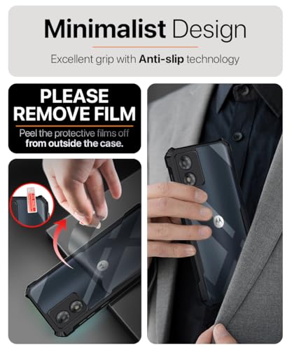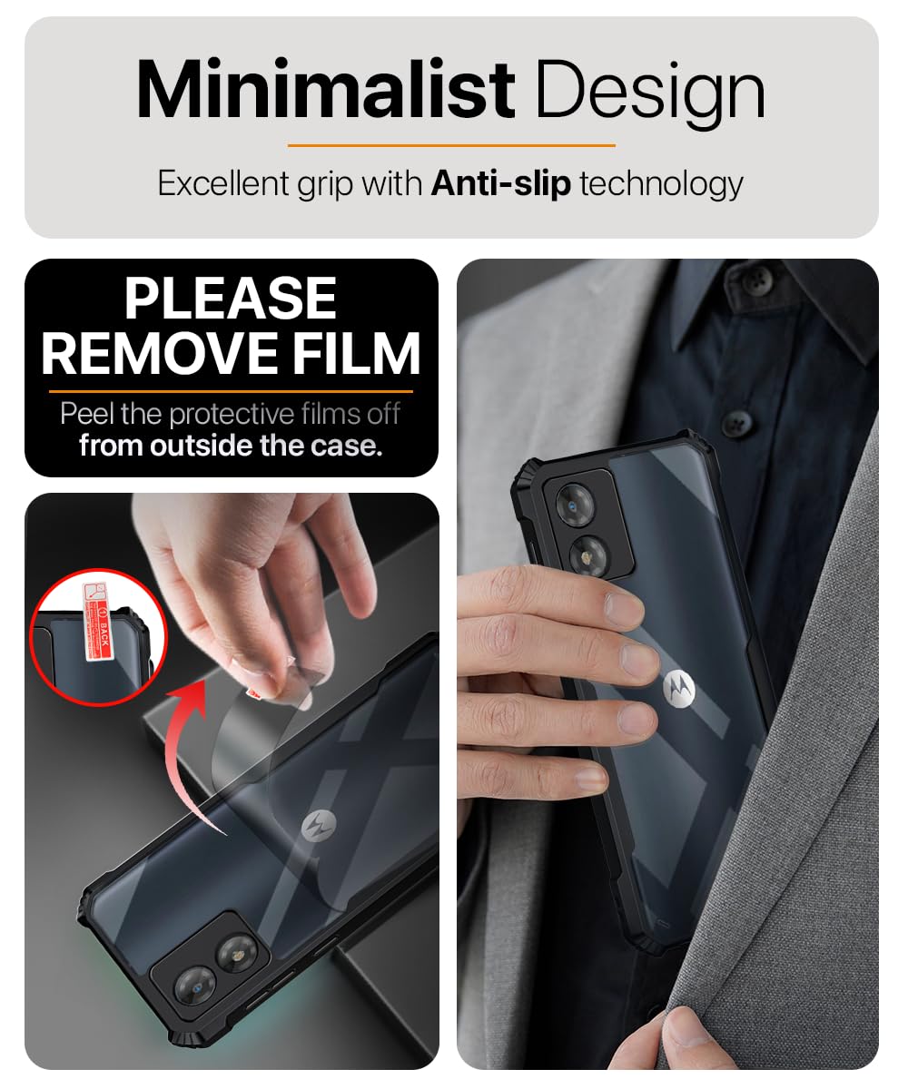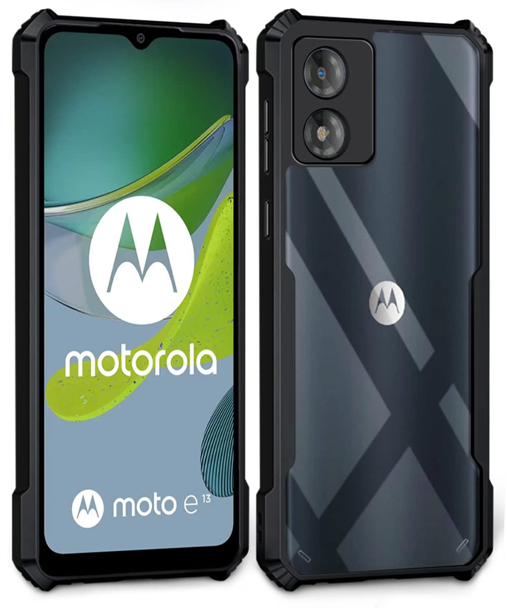 TPU+PC Shock Proof Clear Protective Back Case For Motorola Moto E13 – Airedge Technology | 360 Degree Camera Protection | Transparent Hybrid Back Case Mobile Cover – Black is designed with premium quality materials to provide superior protection, durability, and style for your smartphone. It offers a perfect balance between functionality and aesthetics, ensuring your device stays safe from scratches, impacts, and daily wear. Engineered with precision, it features accurate cutouts for ports, buttons, and cameras, making it highly convenient for everyday use. The slim and lightweight design ensures that your device retains its sleek profile without adding unnecessary bulk. Whether it is a nano film tempered glass, a hybrid back case, or a camera lens protector, each product is created with attention to detail to enhance the user experience and extend the life of your smartphone. The material used ensures long-lasting clarity, anti-scratch performance, and resistance against fingerprints and smudges. It is the ideal choice for users who want both style and substance in their smartphone accessories. This product from KELPUJ reflects innovation and craftsmanship, making it a reliable accessory that safeguards your investment while maintaining modern appeal.