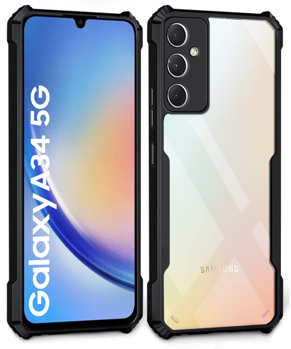 TPU+PC Shock Proof Clear Protective Back Case For Samsung Galaxy A34 5G – Airedge Technology | 360 Degree Camera Protection | Transparent Hybrid Back Case Mobile Cover – Black is designed with premium quality materials to provide superior protection, durability, and style for your smartphone. It offers a perfect balance between functionality and aesthetics, ensuring your device stays safe from scratches, impacts, and daily wear. Engineered with precision, it features accurate cutouts for ports, buttons, and cameras, making it highly convenient for everyday use. The slim and lightweight design ensures that your device retains its sleek profile without adding unnecessary bulk. Whether it is a nano film tempered glass, a hybrid back case, or a camera lens protector, each product is created with attention to detail to enhance the user experience and extend the life of your smartphone. The material used ensures long-lasting clarity, anti-scratch performance, and resistance against fingerprints and smudges. It is the ideal choice for users who want both style and substance in their smartphone accessories. This product from KELPUJ reflects innovation and craftsmanship, making it a reliable accessory that safeguards your investment while maintaining modern appeal.