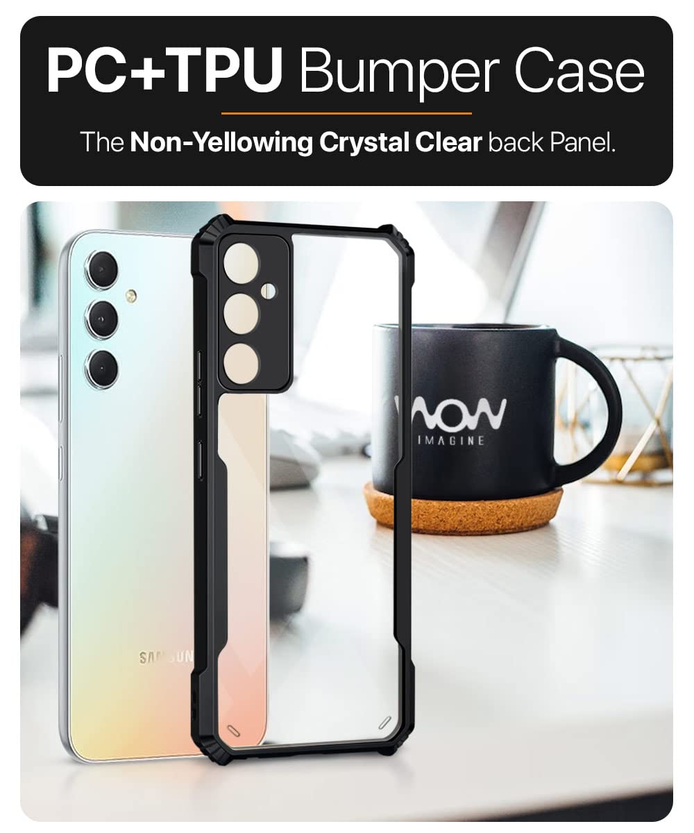 TPU+PC Shock Proof Clear Protective Back Case For Samsung Galaxy A54 5G-Airedge Technology|360 Degree Camera Protection|Transparent Hybrid Back Case Mobile Cover-Black is designed with premium quality materials to provide superior protection, durability, and style for your smartphone. It offers a perfect balance between functionality and aesthetics, ensuring your device stays safe from scratches, impacts, and daily wear. Engineered with precision, it features accurate cutouts for ports, buttons, and cameras, making it highly convenient for everyday use. The slim and lightweight design ensures that your device retains its sleek profile without adding unnecessary bulk. Whether it is a nano film tempered glass, a hybrid back case, or a camera lens protector, each product is created with attention to detail to enhance the user experience and extend the life of your smartphone. The material used ensures long-lasting clarity, anti-scratch performance, and resistance against fingerprints and smudges. It is the ideal choice for users who want both style and substance in their smartphone accessories. This product from KELPUJ reflects innovation and craftsmanship, making it a reliable accessory that safeguards your investment while maintaining modern appeal.