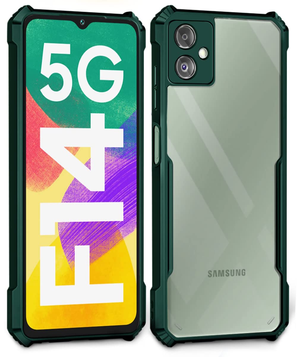 kelpuj TPU+PC Shock Proof Clear Protective Back Case for Samsung Galaxy F14 5G-Airedge Technology|360 Degree Camera Protection|Transparent Hybrid Back Case Mobile Cover-Green