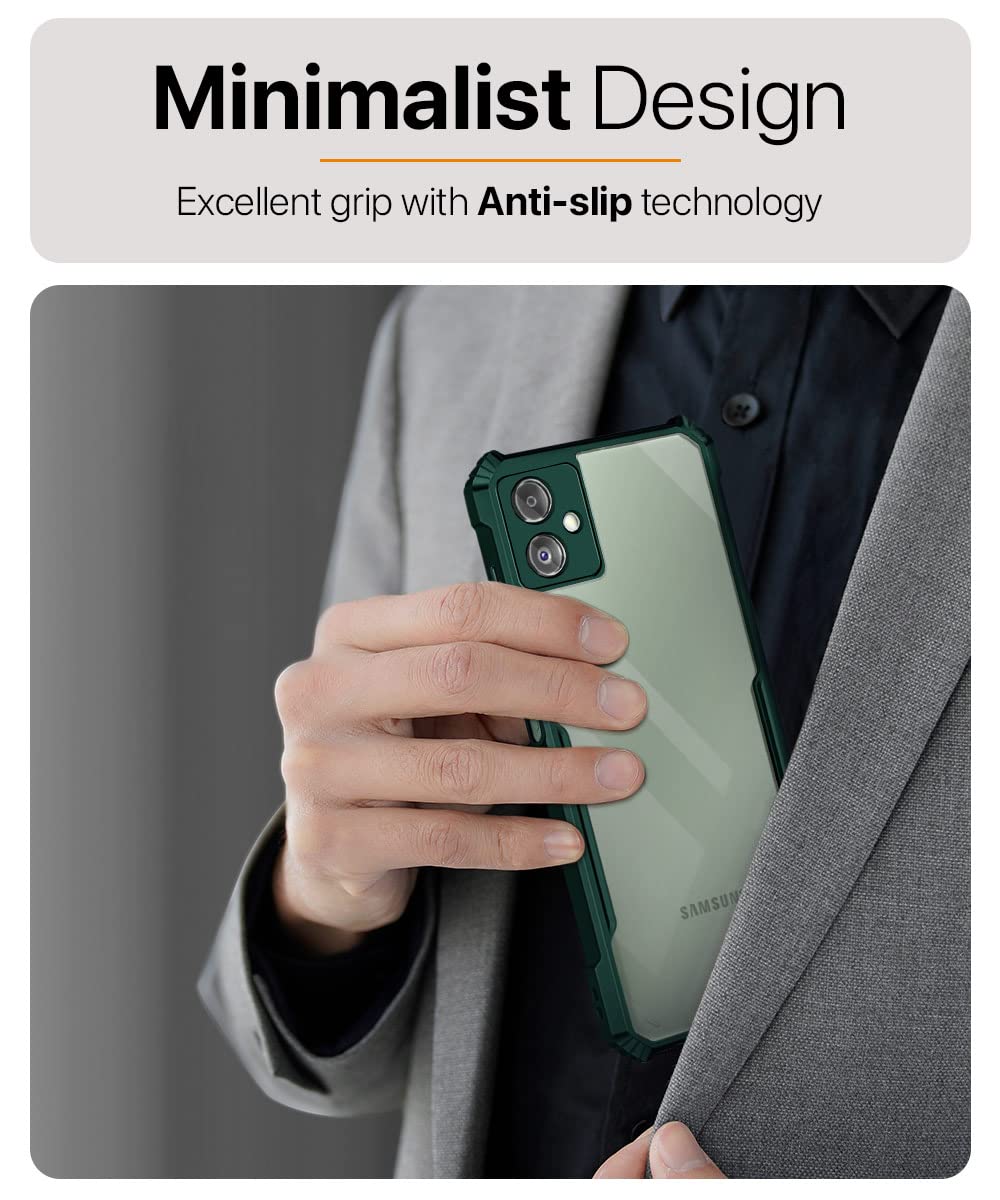 TPU+PC Shock Proof Clear Protective Back Case For Samsung Galaxy F14 5G-Airedge Technology|360 Degree Camera Protection|Transparent Hybrid Back Case Mobile Cover-Green is designed with premium quality materials to provide superior protection, durability, and style for your smartphone. It offers a perfect balance between functionality and aesthetics, ensuring your device stays safe from scratches, impacts, and daily wear. Engineered with precision, it features accurate cutouts for ports, buttons, and cameras, making it highly convenient for everyday use. The slim and lightweight design ensures that your device retains its sleek profile without adding unnecessary bulk. Whether it is a nano film tempered glass, a hybrid back case, or a camera lens protector, each product is created with attention to detail to enhance the user experience and extend the life of your smartphone. The material used ensures long-lasting clarity, anti-scratch performance, and resistance against fingerprints and smudges. It is the ideal choice for users who want both style and substance in their smartphone accessories. This product from KELPUJ reflects innovation and craftsmanship, making it a reliable accessory that safeguards your investment while maintaining modern appeal.