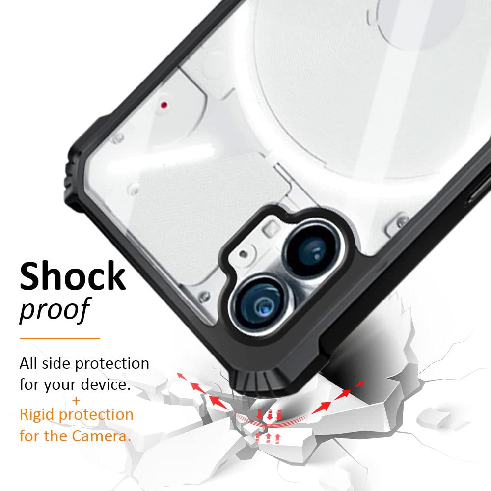 kelpuj TPU+PC Shock Proof Clear Protective Back Cover Case for Nothing Phone 1 5G – Airedge Technology | 360 Degree Camera Protection | Transparent Hybrid Back Case Mobile Cover – Black
