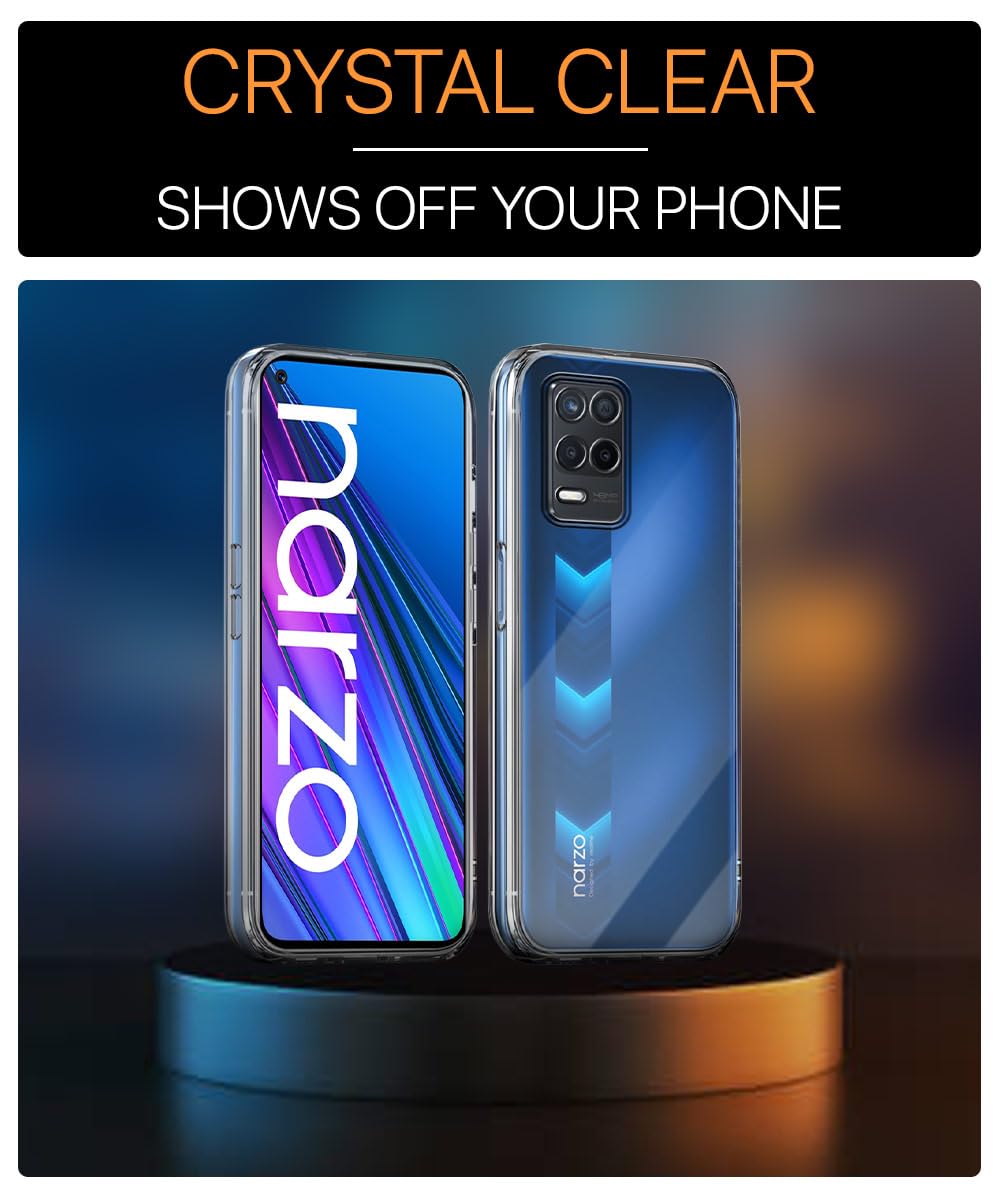 Ultra-Hybrid Clear Back Case Cover Designed for Realme Narzo 30 5G | 9 5G | 8 5G | 8s 5G | Sleek Hard Back | Cushion Edge Technology Shockproof Drop & Camera Protection Bump Transparent is designed with premium quality materials to provide superior protection, durability, and style for your smartphone. It offers a perfect balance between functionality and aesthetics, ensuring your device stays safe from scratches, impacts, and daily wear. Engineered with precision, it features accurate cutouts for ports, buttons, and cameras, making it highly convenient for everyday use. The slim and lightweight design ensures that your device retains its sleek profile without adding unnecessary bulk. Whether it is a nano film tempered glass, a hybrid back case, or a camera lens protector, each product is created with attention to detail to enhance the user experience and extend the life of your smartphone. The material used ensures long-lasting clarity, anti-scratch performance, and resistance against fingerprints and smudges. It is the ideal choice for users who want both style and substance in their smartphone accessories. This product from KELPUJ reflects innovation and craftsmanship, making it a reliable accessory that safeguards your investment while maintaining modern appeal.