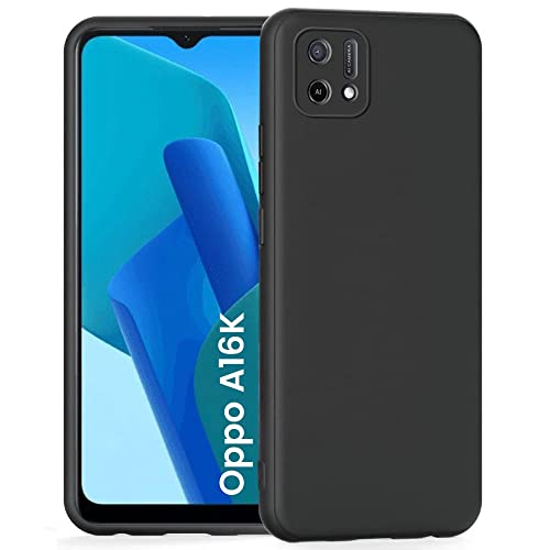 kelpuj Ultra Slim Soft Rubberised Back Case Cover for Oppo A16k | Inner Velvet Fabric Lining | Matte Silicone Flexible Camera Protection Back Case for Oppo A16k – Black