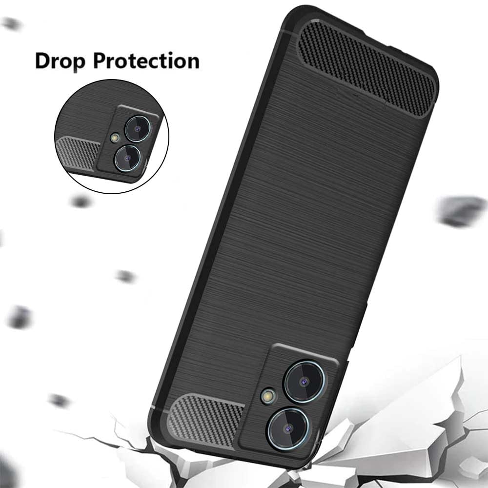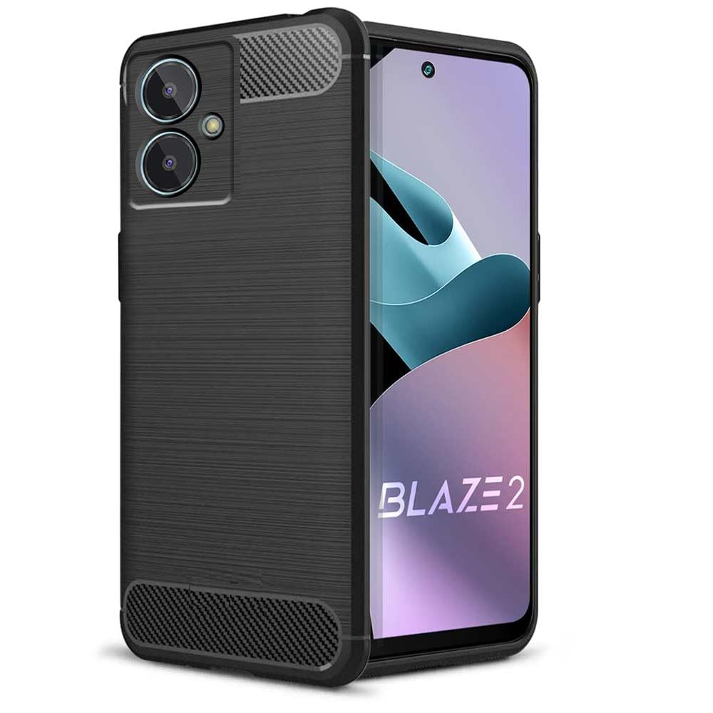 Lava Blaze 2 Slim Soft Rubberised Back Cover | Shock Proof Brushed Carbon Fibre Texture Silicone Flexible Camera Protection Back Case – Black