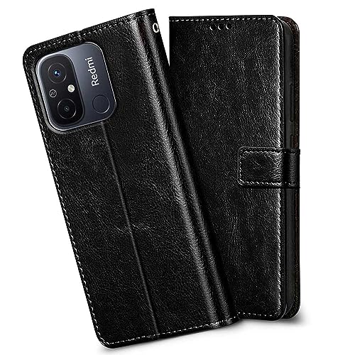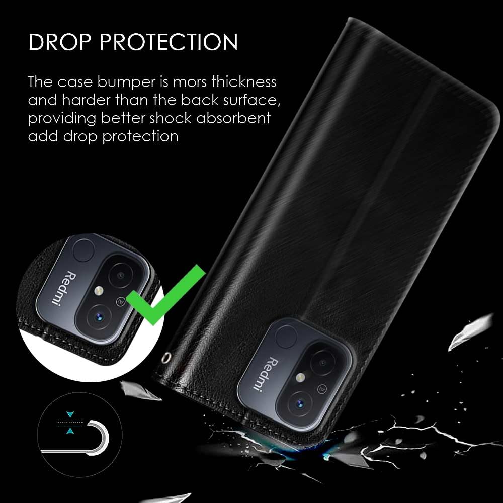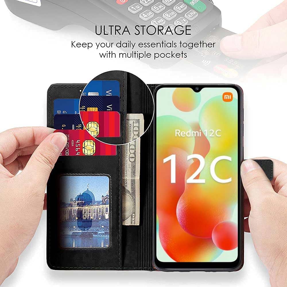 Shock Proof Flip Cover Back Case for Xiaomi Redmi 12C | Magnetic Wallet Leather Case with Stand