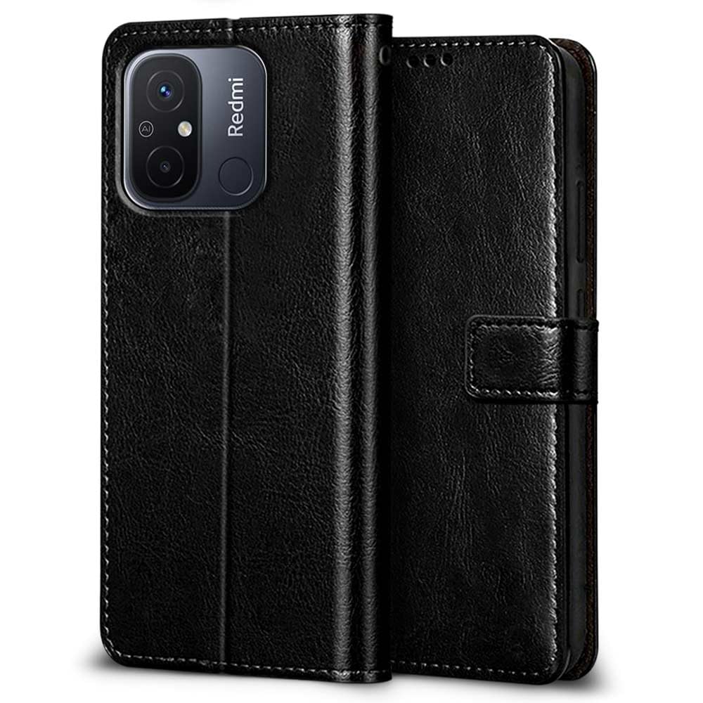 Buy premium shock proof flip cover back case for xiaomi redmi 12c. Leather finish with magnetic flip closure, wallet pockets and stand support. Durable protection against drops and scratches with a perfect fit for xiaomi redmi 12c.