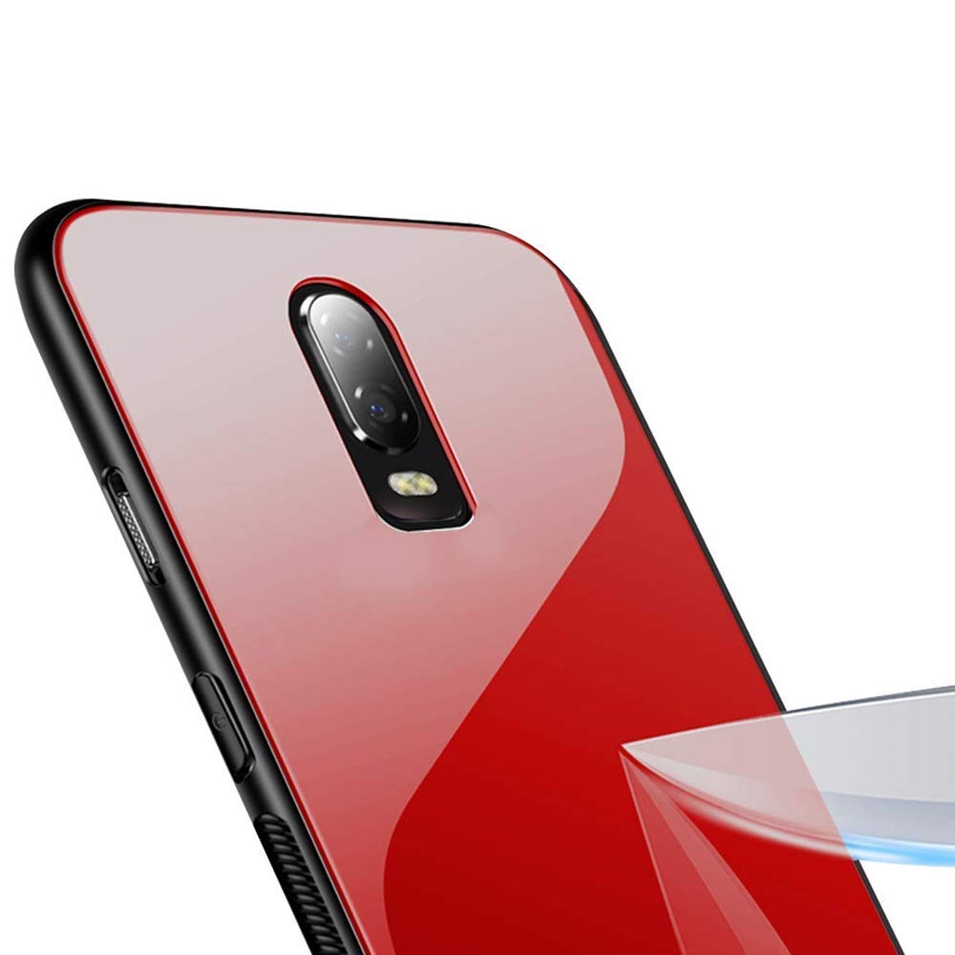 Luxury Mirror Bumper Back Tempered Glass Case [ Anti Slip ] Super Slim [Flexible] All Angle Protection Full Mirror View Back Lightweight Matte Soft Back Case Cover for Oneplus 6T – Red