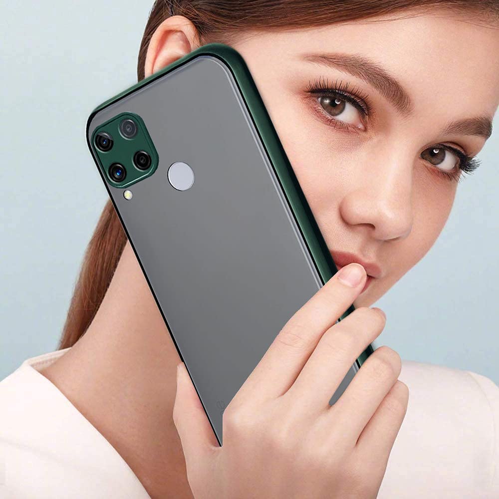 Poly Carbonate Translucent Smoked Matte Back 360 Degree Protection Hybrid Protective Hard Back Cover for Realme Narzo 30A, 20, Realme C25s, C25, C12 (Green Bumper)