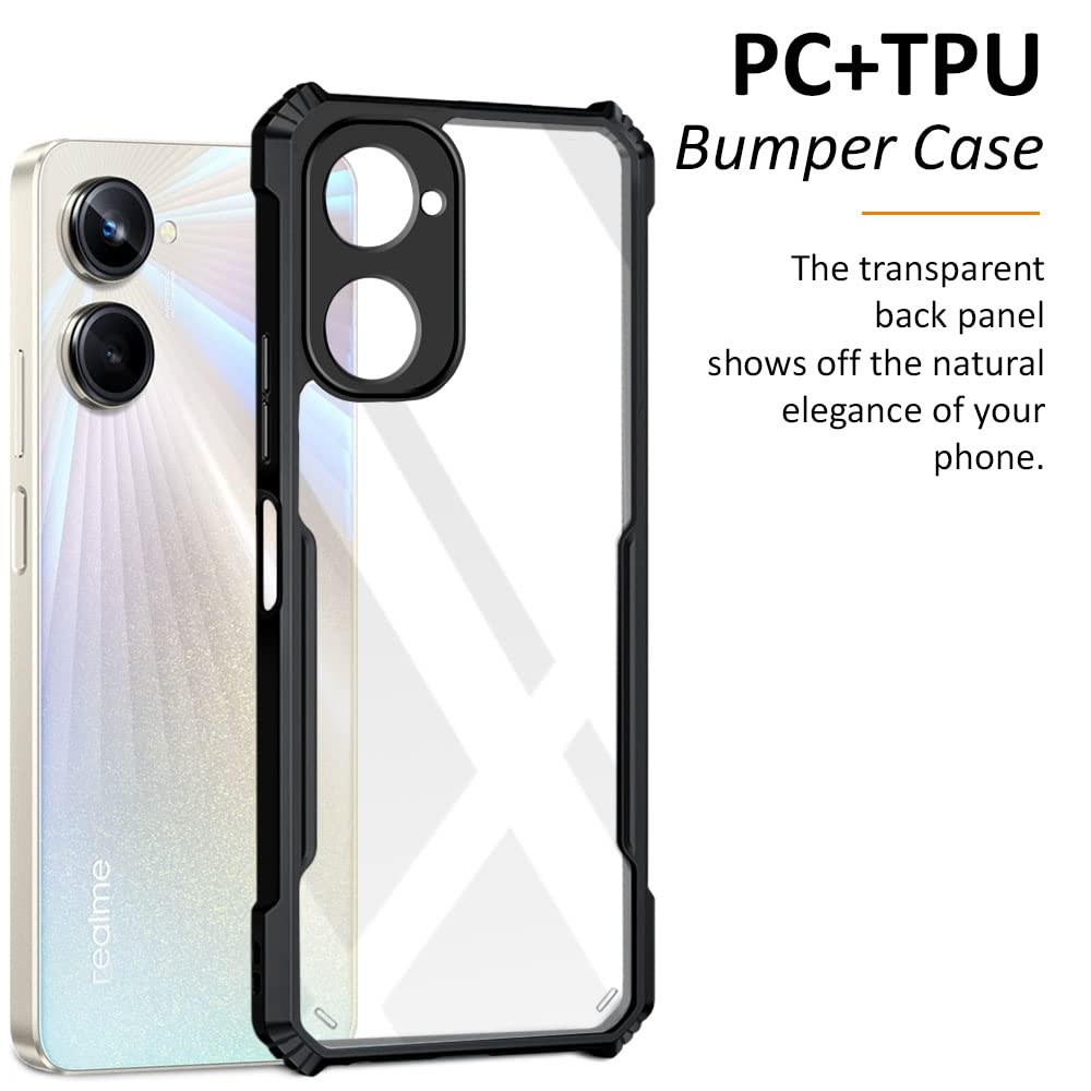 Polycarbonate Back Cover for Realme 10 Pro 5G – Airedge Technology | Crystal Clear Transparent Mobile Case Cover | Hard Bumper | Full Armor Shockproof Device & Camera Protection | Black