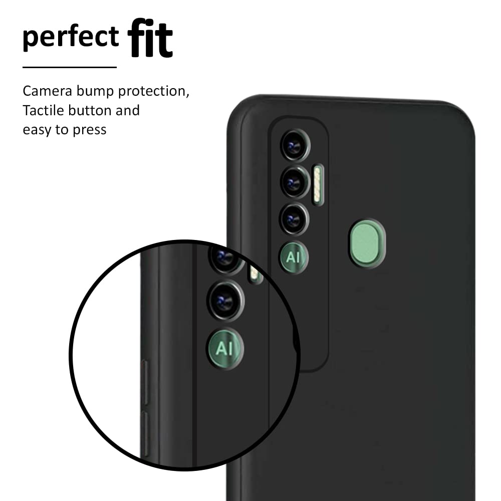 Protective Sleek Back Case Cover for Tecno Spark 7 Pro (Flexible | Silicone | Shock Proof, Anti Slip, Soft Rubberised | Pitch Black)