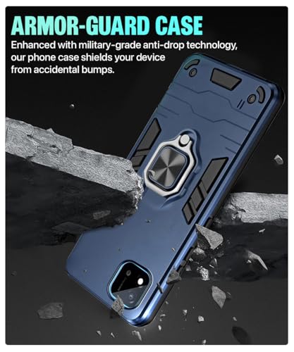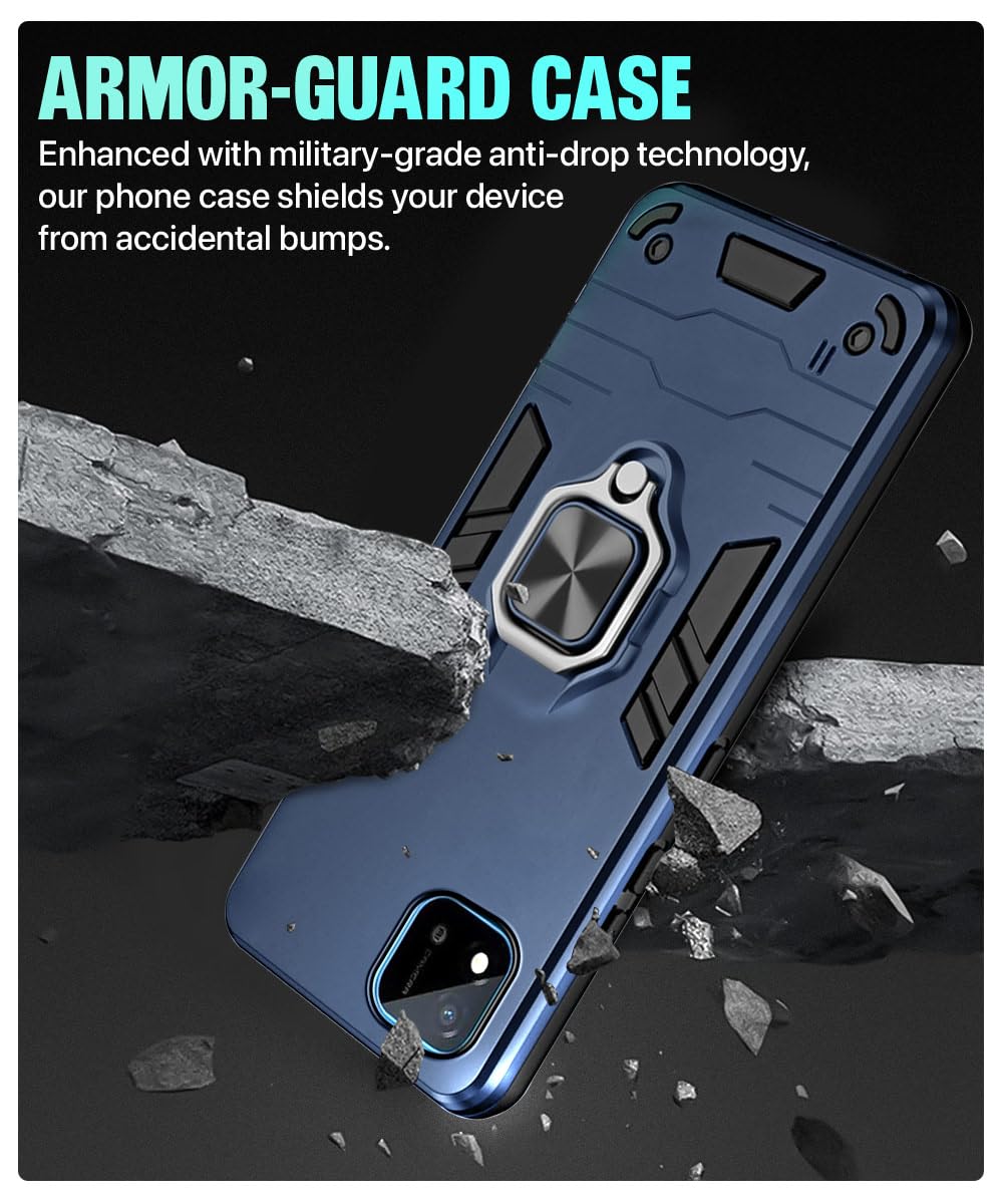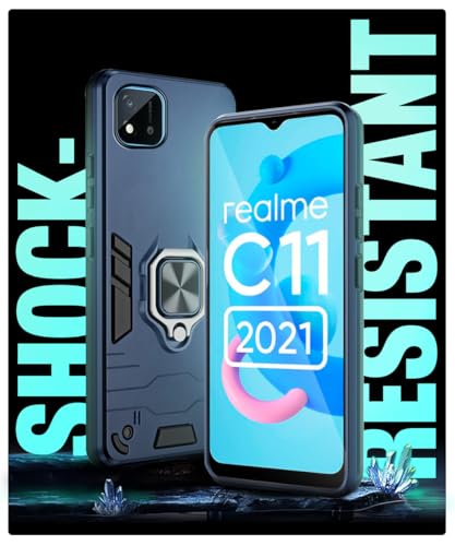 Realme C11 2021 | C20 Tough Armor Bumper Back Case Cover | Ring Holder & Kickstand in-Built | Excellent 360 Degree Protection (Carbon Blue)