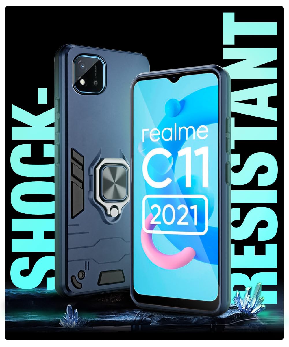 The Realme C11 2021 | C20 Tough Armor Bumper Back Case Cover | Ring Holder & Kickstand in-Built | Excellent 360 Degree Protection (Carbon Blue) is designed with premium quality materials to provide superior protection, durability, and style for your smartphone. It offers a perfect balance between functionality and aesthetics, ensuring your device stays safe from scratches, impacts, and daily wear. Engineered with precision, it features accurate cutouts for ports, buttons, and cameras, making it highly convenient for everyday use. The slim and lightweight design ensures that your device retains its sleek profile without adding unnecessary bulk. Whether it is a nano film tempered glass, a hybrid back case, or a camera lens protector, each product is created with attention to detail to enhance the user experience and extend the life of your smartphone. The material used ensures long-lasting clarity, anti-scratch performance, and resistance against fingerprints and smudges. It is the ideal choice for users who want both style and substance in their smartphone accessories. This product from reflects innovation and craftsmanship, making it a reliable accessory that safeguards your investment while maintaining modern appeal.