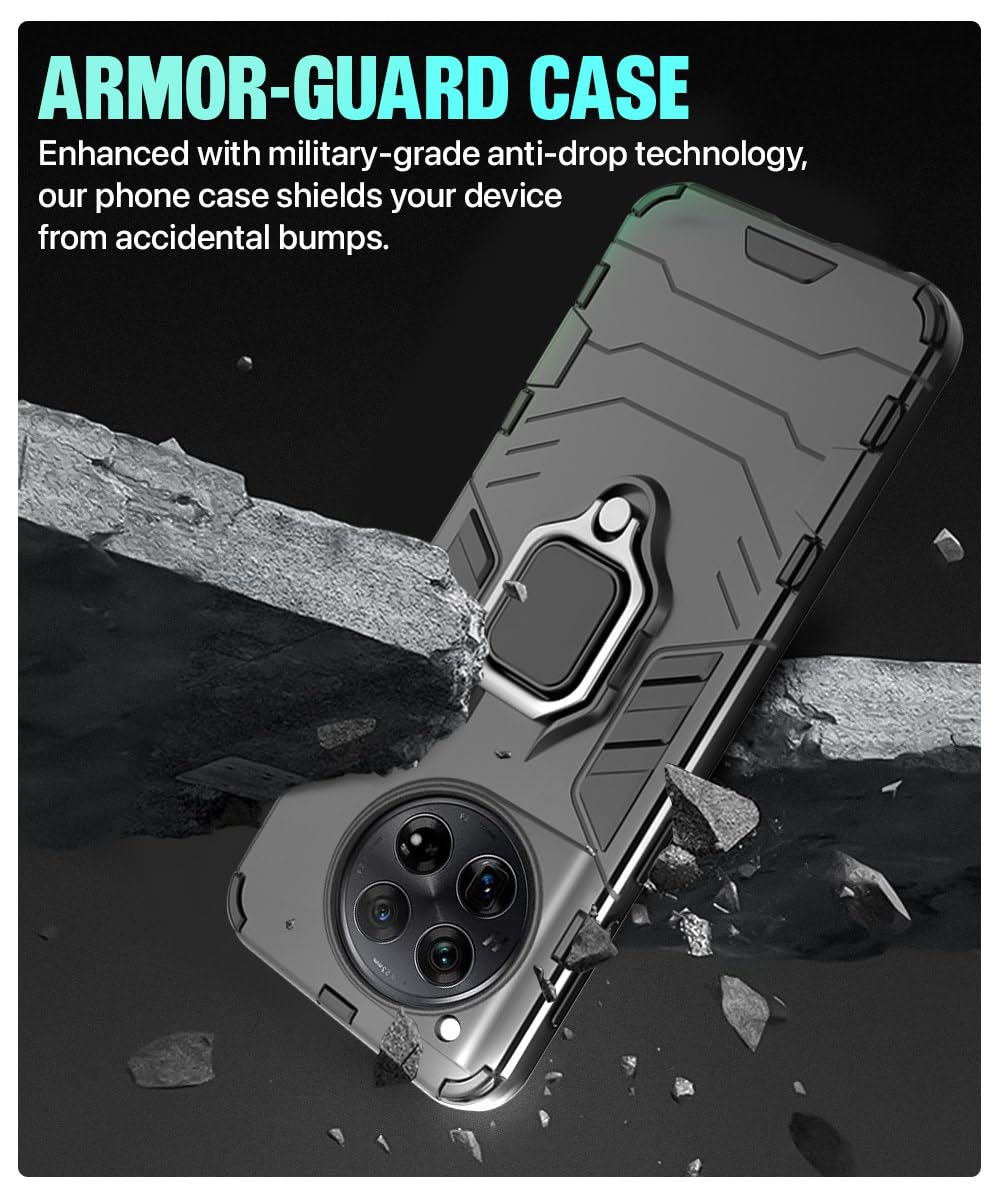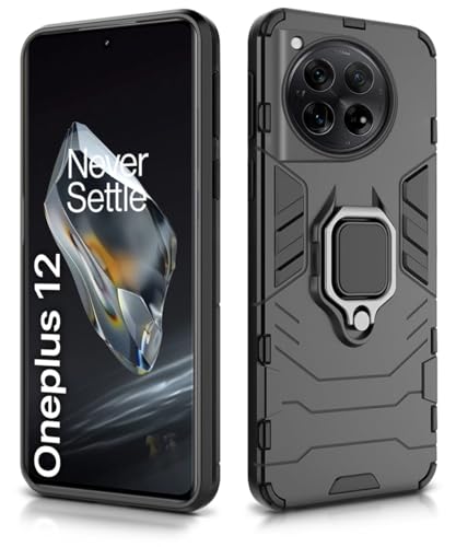 Shock Proof Back Case Mobile Cover for 1+ OnePlus 12 5G | Back Cover Case (Tough Armor | Hybrid PC + TPU | Ring Holder & in-Built Kickstand | Black)