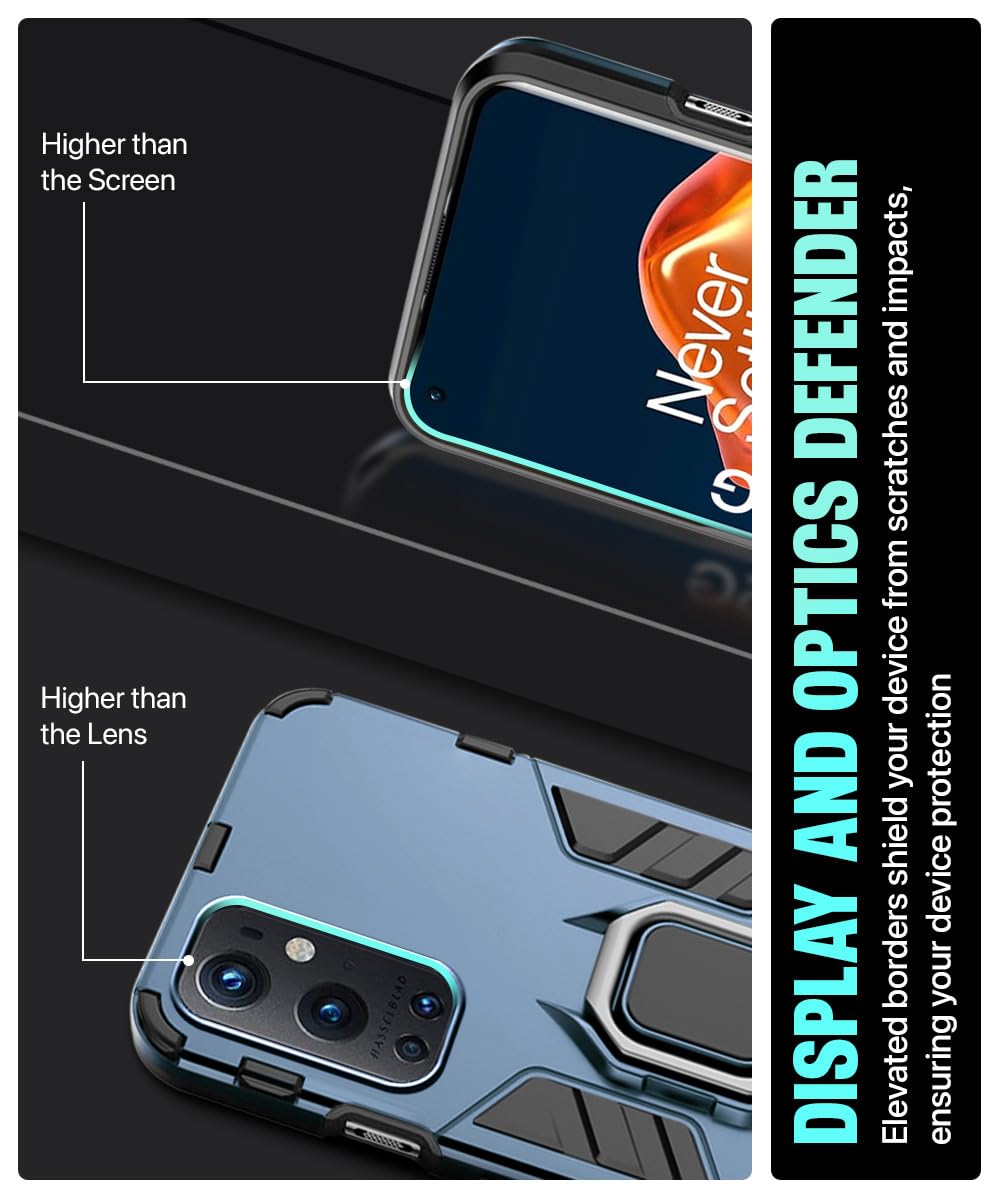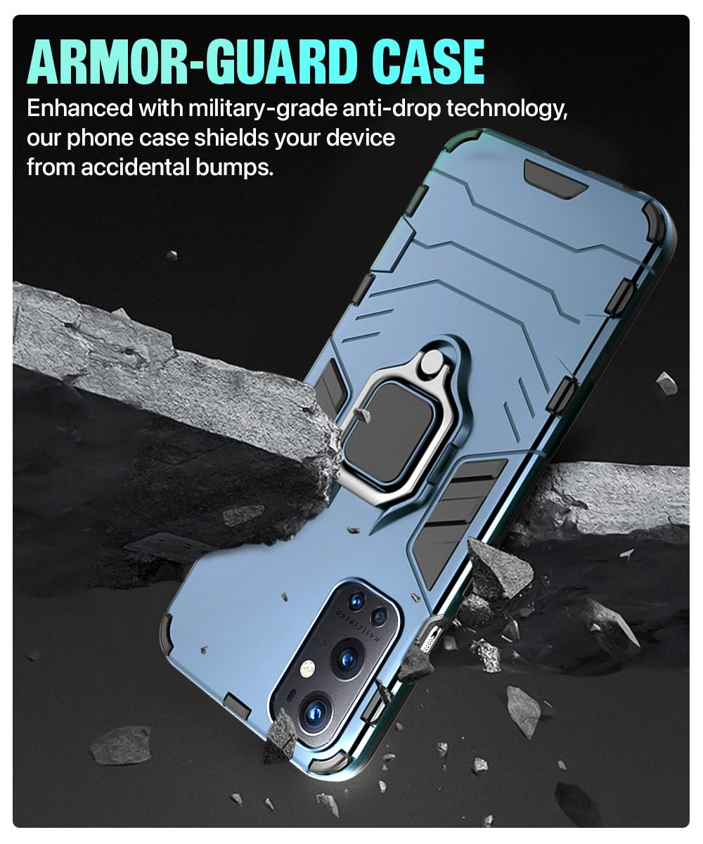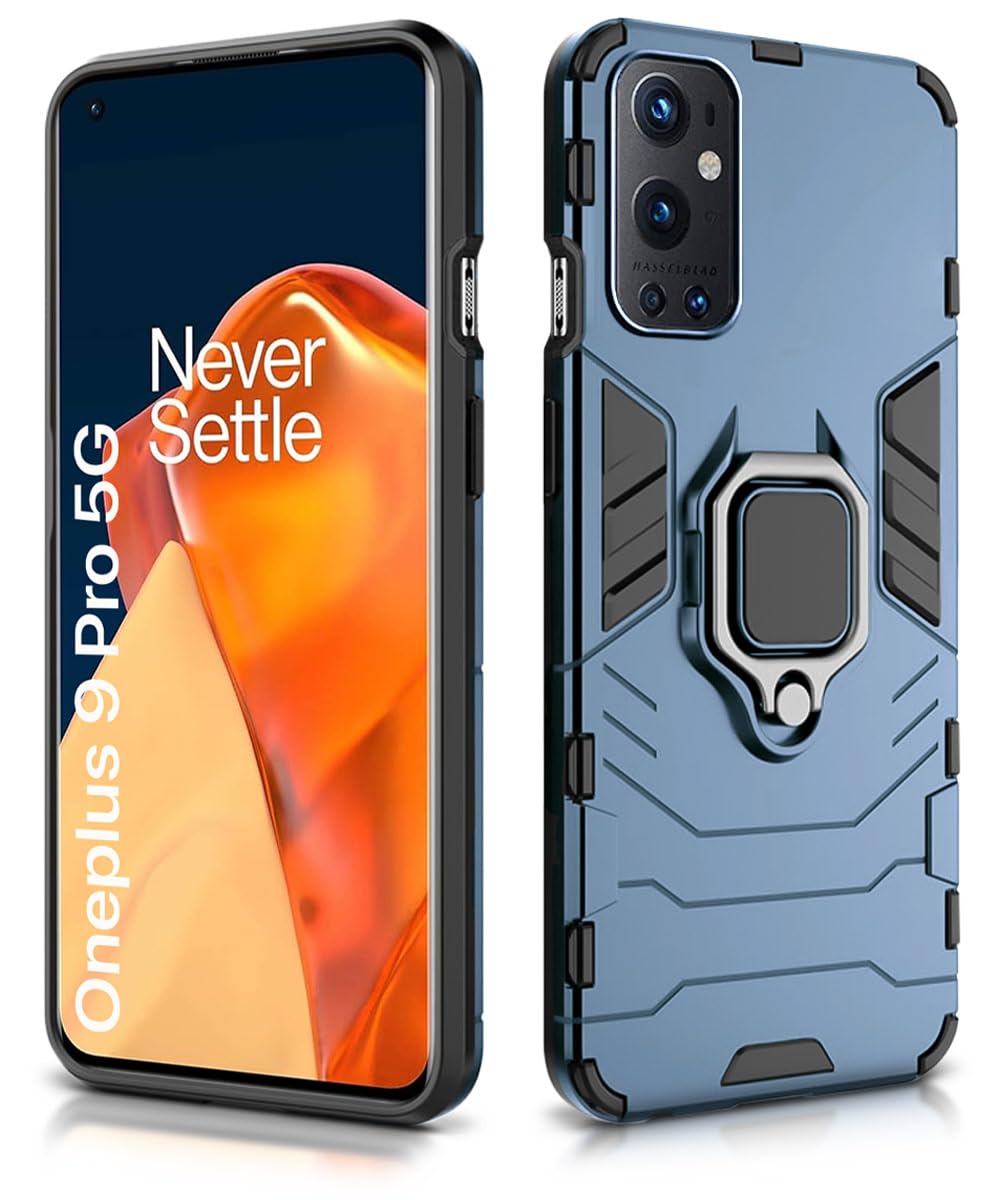 Shock Proof Back Case Mobile Cover for 1+ OnePlus 9 Pro 5G | Back Cover Case (Tough Armor | Hybrid PC + TPU | Ring Holder & in-Built Kickstand | Blue)