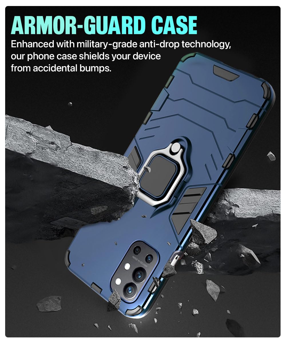 Shock Proof Back Case Mobile Cover for 1+ OnePlus 9R | 8T | Back Cover Case (Tough Armor | Hybrid PC + TPU | Ring Holder & in-Built Kickstand | Blue)