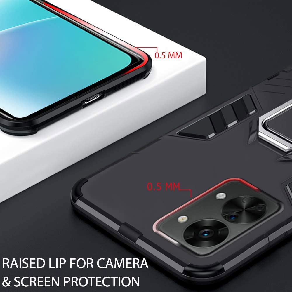 Shock Proof Back Case Mobile Cover for 1+ OnePlus Nord 2T 5G | Back Cover Case (Tough Armor | Hybrid PC + TPU | Ring Holder & in-Built Kickstand | Black)