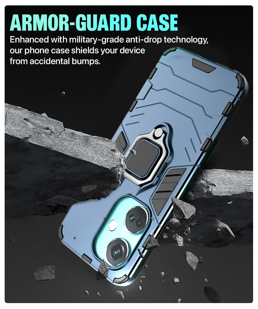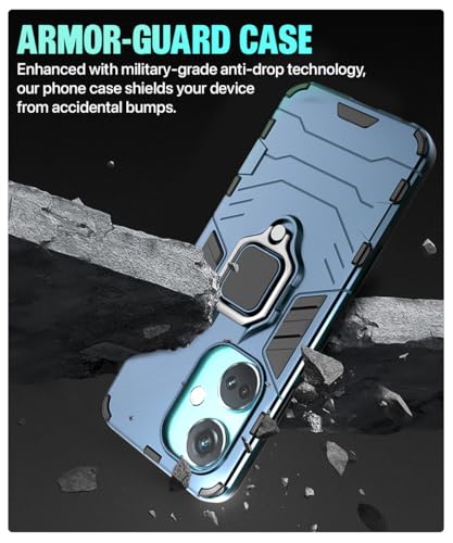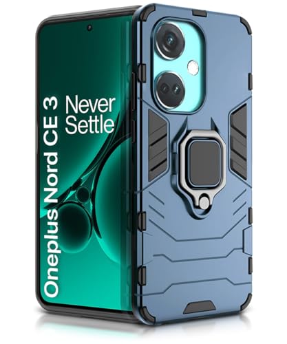 Shock Proof Back Case Mobile Cover for 1+ OnePlus Nord CE 3 5G | Back Cover Case (Tough Armor | Hybrid PC + TPU | Ring Holder & in-Built Kickstand | Blue)