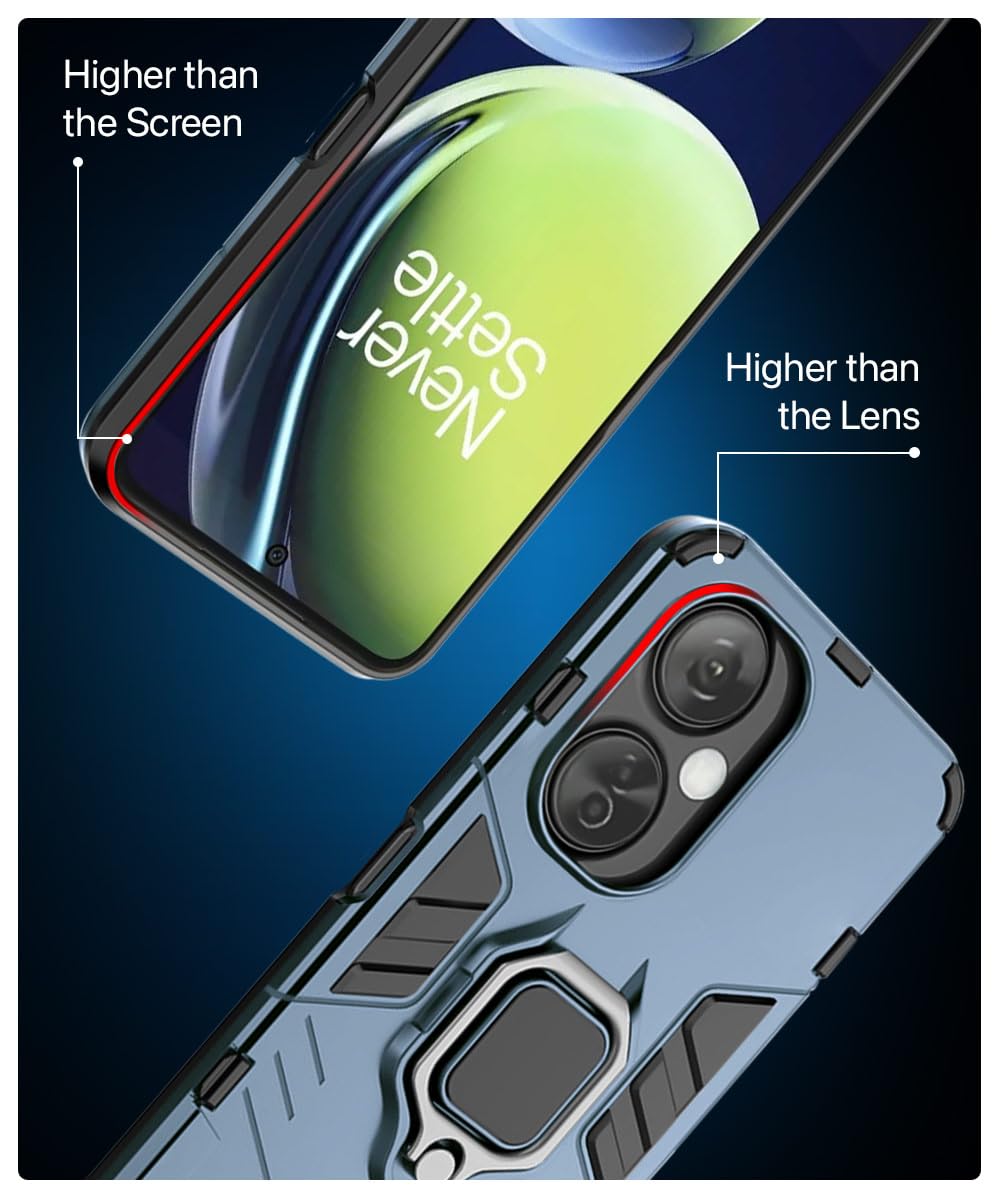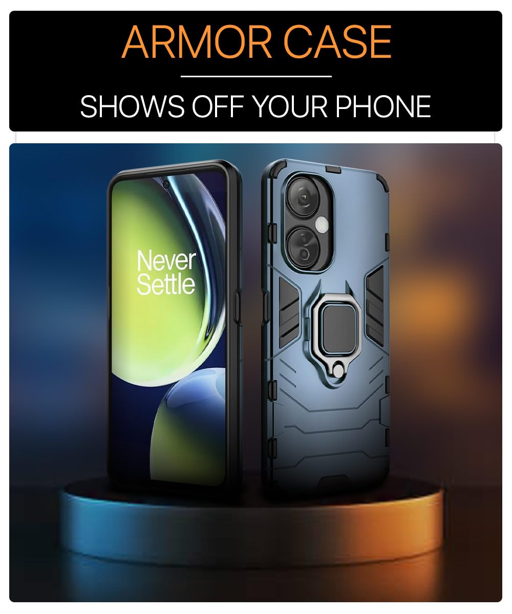 Shock Proof Back Case Mobile Cover for 1+ OnePlus Nord CE 3 Lite 5G | Bumper Back Cover Case (Tough Armor | Hybrid PC + TPU | Full Protection with Ring Holder & in-Built Kickstand | Blue)