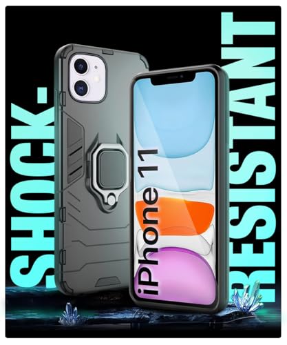 Shock Proof Back Case Mobile Cover for Apple iPhone 11 (6.1-inch) (Armor | Hybrid PC + TPU | Full Protection with Ring Holder Kickstand | Carbon Black)