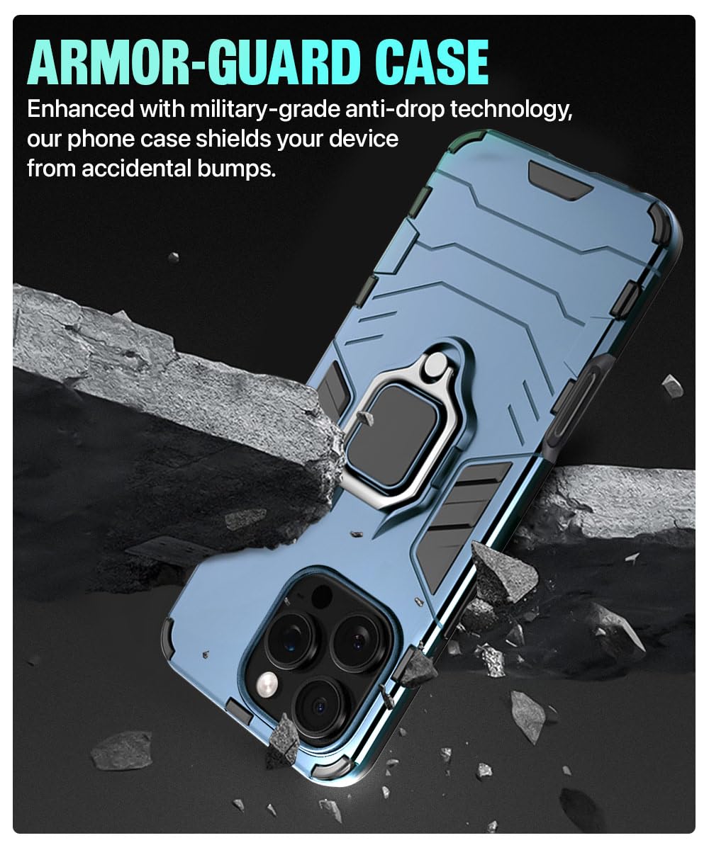 Shock Proof Back Case Mobile Cover for iPhone 16 Pro | Back Cover Case (Tough Armor | Hybrid PC + TPU | Ring Holder & in-Built Kickstand | Blue)