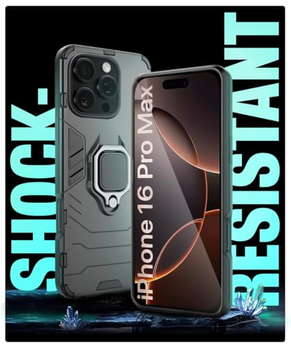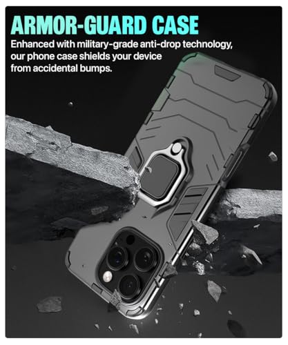 Shock Proof Back Case Mobile Cover for iPhone 16 Pro Max | Back Cover Case (Tough Armor | Hybrid PC + TPU | Ring Holder & in-Built Kickstand | Black)