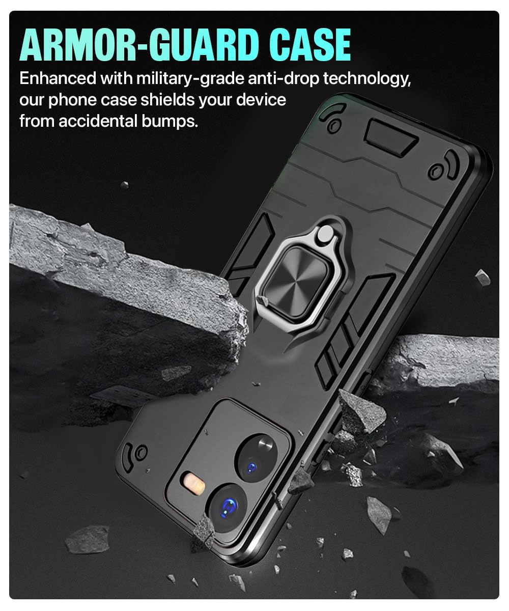The Shock Proof Back Case Mobile Cover for iQOO Z9 5G | Back Cover Case (Tough Armor | Hybrid PC + TPU | Ring Holder & in-Built Kickstand | Black) is designed with premium quality materials to provide superior protection, durability, and style for your smartphone. It offers a perfect balance between functionality and aesthetics, ensuring your device stays safe from scratches, impacts, and daily wear. Engineered with precision, it features accurate cutouts for ports, buttons, and cameras, making it highly convenient for everyday use. The slim and lightweight design ensures that your device retains its sleek profile without adding unnecessary bulk. Whether it is a nano film tempered glass, a hybrid back case, or a camera lens protector, each product is created with attention to detail to enhance the user experience and extend the life of your smartphone. The material used ensures long-lasting clarity, anti-scratch performance, and resistance against fingerprints and smudges. It is the ideal choice for users who want both style and substance in their smartphone accessories. This product from reflects innovation and craftsmanship, making it a reliable accessory that safeguards your investment while maintaining modern appeal.