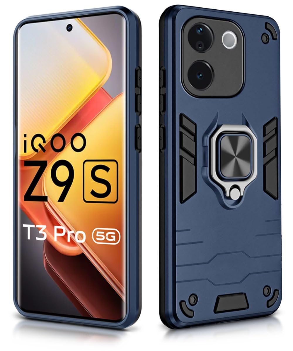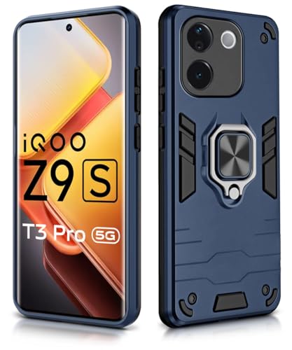 Shock Proof Back Case Mobile Cover for iQOO Z9s Pro 5G | Vivo T3 Pro 5G | Back Cover Case (Tough Armor | Hybrid PC + TPU | Ring Holder & in-Built Kickstand | Blue)