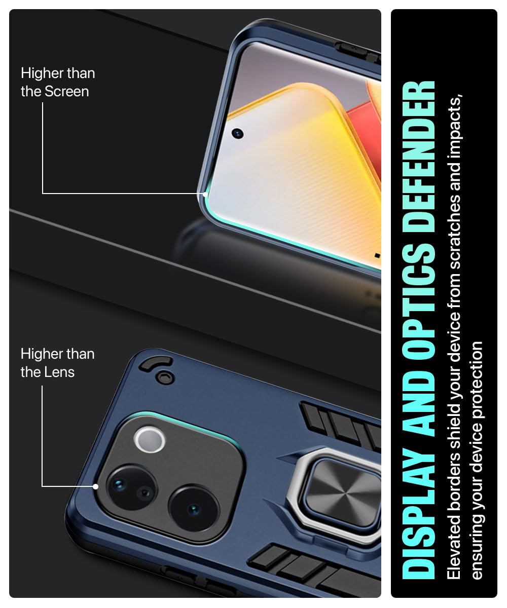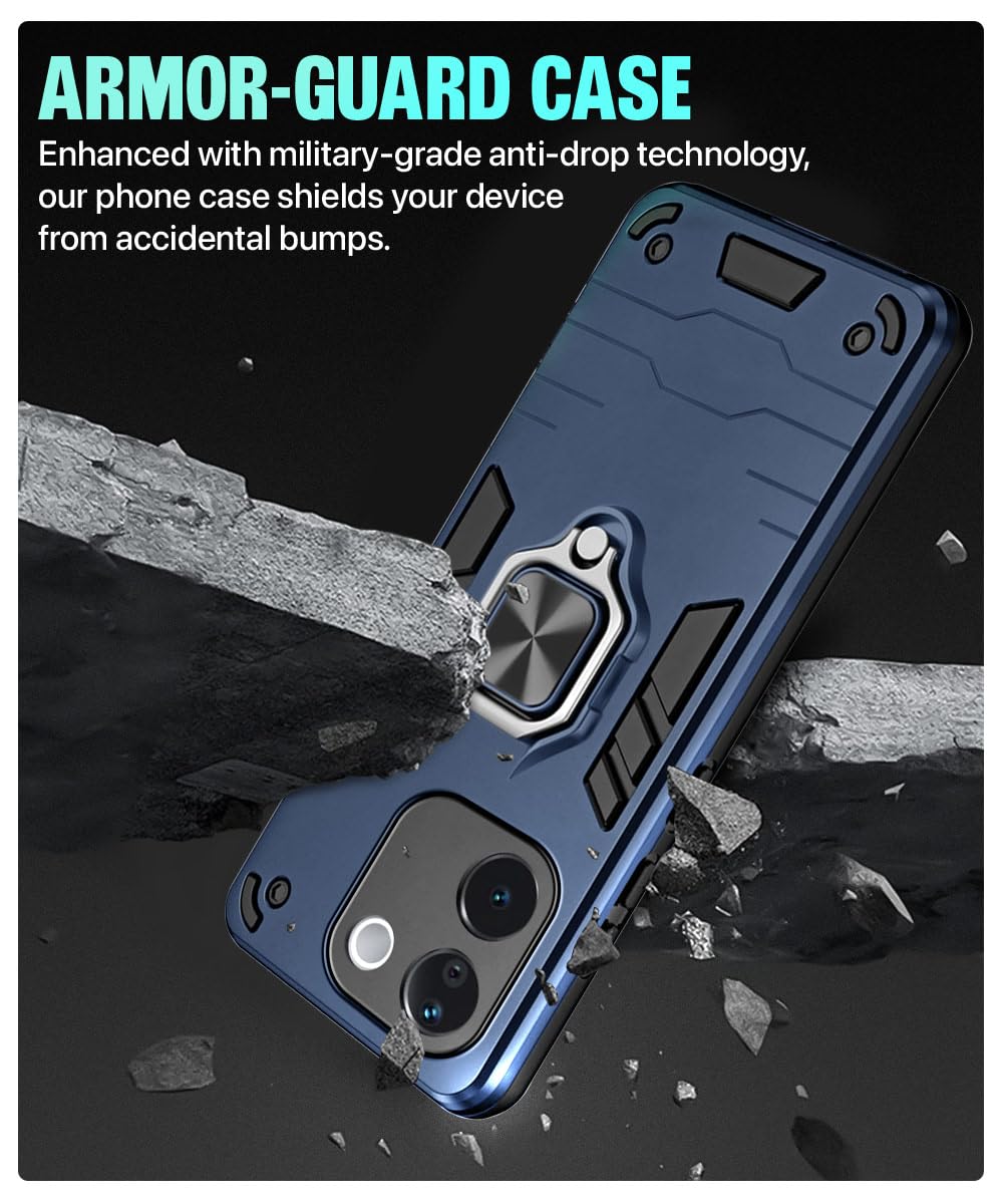 The Shock Proof Back Case Mobile Cover for iQOO Z9s Pro 5G | Vivo T3 Pro 5G | Back Cover Case (Tough Armor | Hybrid PC + TPU | Ring Holder & in-Built Kickstand | Blue) is designed with premium quality materials to provide superior protection, durability, and style for your smartphone. It offers a perfect balance between functionality and aesthetics, ensuring your device stays safe from scratches, impacts, and daily wear. Engineered with precision, it features accurate cutouts for ports, buttons, and cameras, making it highly convenient for everyday use. The slim and lightweight design ensures that your device retains its sleek profile without adding unnecessary bulk. Whether it is a nano film tempered glass, a hybrid back case, or a camera lens protector, each product is created with attention to detail to enhance the user experience and extend the life of your smartphone. The material used ensures long-lasting clarity, anti-scratch performance, and resistance against fingerprints and smudges. It is the ideal choice for users who want both style and substance in their smartphone accessories. This product from reflects innovation and craftsmanship, making it a reliable accessory that safeguards your investment while maintaining modern appeal.