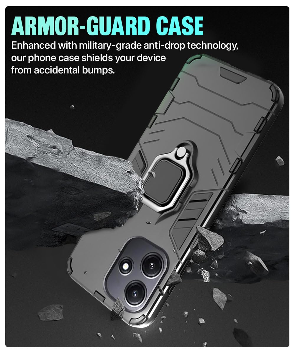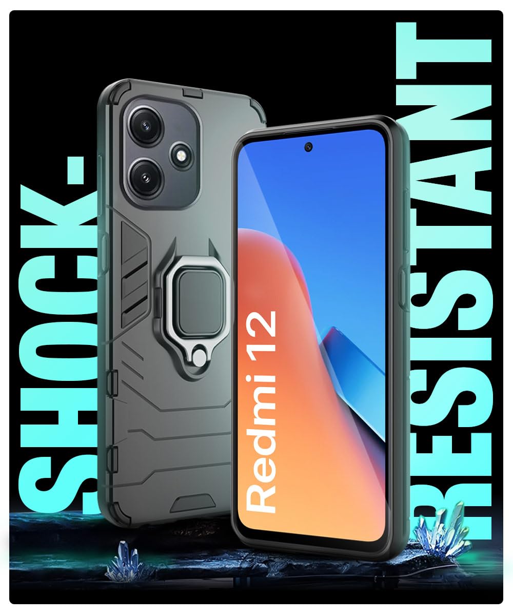 Shock Proof Back Case Mobile Cover for Mi Redmi 12 5G | Redmi 12 4G | Poco M6 Pro 5G (Tough Armor | Hybrid PC + TPU | Full Protection with Ring Holder & in-Built Kickstand | Black)