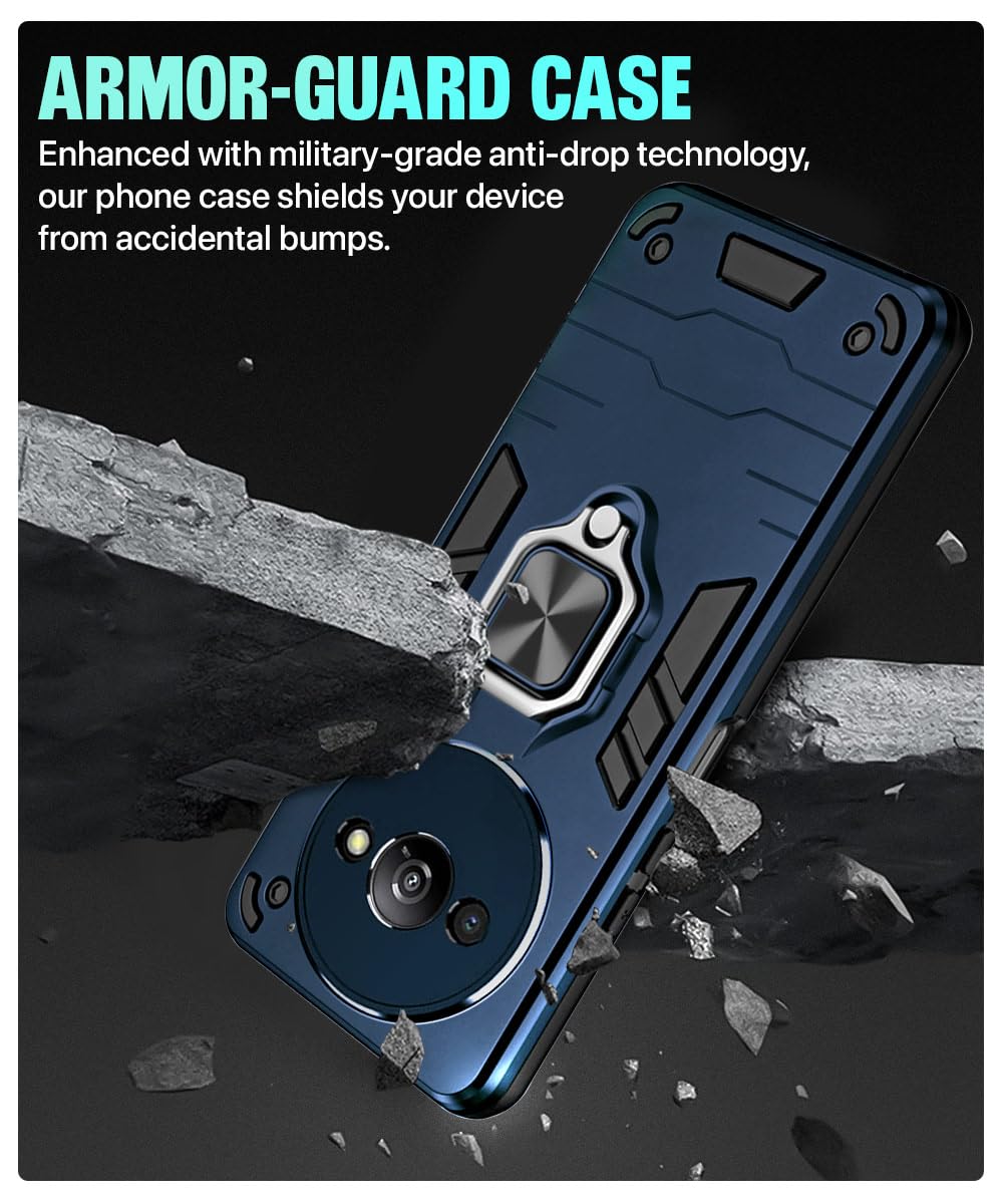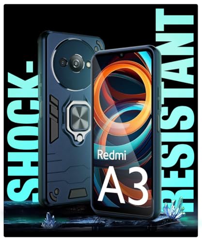 Shock Proof Back Case Mobile Cover for Mi Redmi A3 | Redmi A3X | Poco C61 | Back Cover Case (Tough Armor | Hybrid PC + TPU | Ring Holder & in-Built Kickstand | Blue)