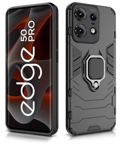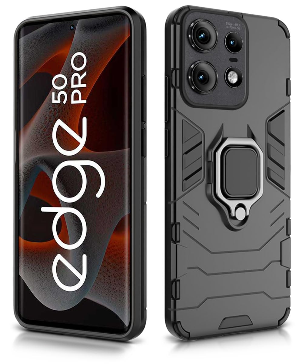 Shock Proof Back Case Mobile Cover for Motorola Moto Edge 50 Pro | Back Cover Case (Tough Armor | Hybrid PC + TPU | Ring Holder & in-Built Kickstand | Black)