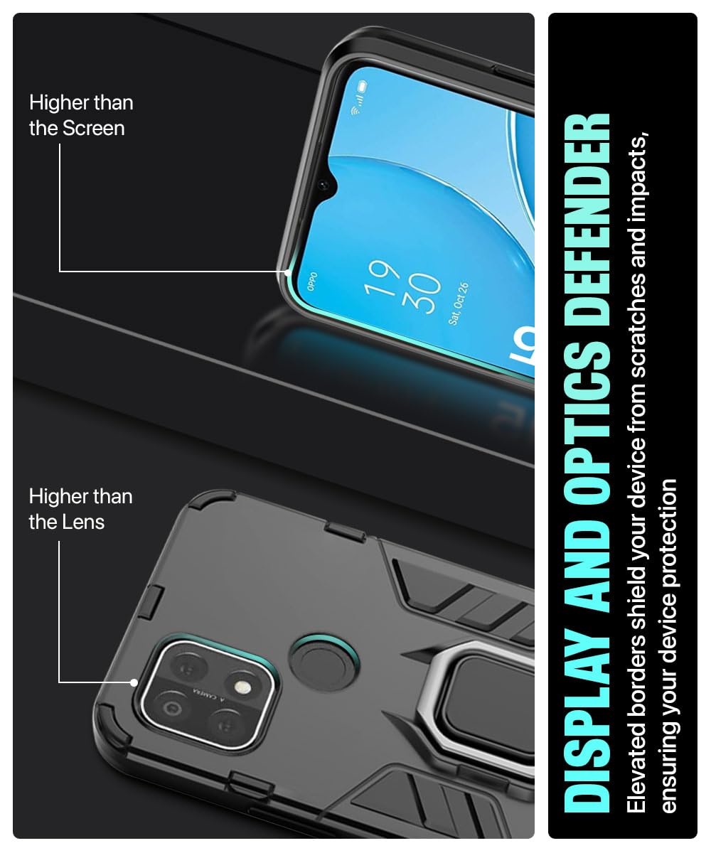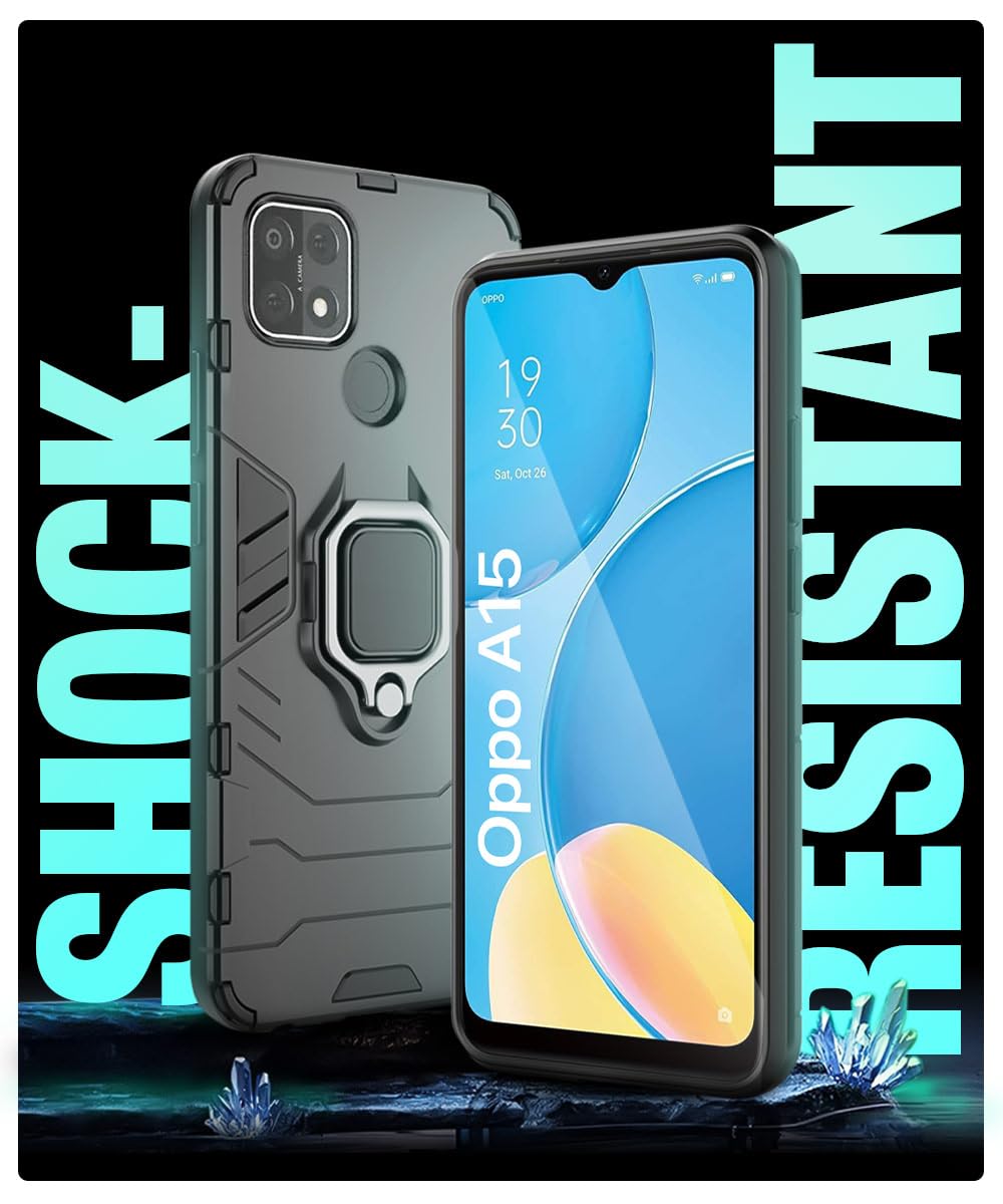 The Shock Proof Back Case Mobile Cover for Oppo A15 | Oppo A15s (Armor | Hybrid PC + TPU | Full Protection with Ring Holder Kickstand | Carbon Black) is designed with premium quality materials to provide superior protection, durability, and style for your smartphone. It offers a perfect balance between functionality and aesthetics, ensuring your device stays safe from scratches, impacts, and daily wear. Engineered with precision, it features accurate cutouts for ports, buttons, and cameras, making it highly convenient for everyday use. The slim and lightweight design ensures that your device retains its sleek profile without adding unnecessary bulk. Whether it is a nano film tempered glass, a hybrid back case, or a camera lens protector, each product is created with attention to detail to enhance the user experience and extend the life of your smartphone. The material used ensures long-lasting clarity, anti-scratch performance, and resistance against fingerprints and smudges. It is the ideal choice for users who want both style and substance in their smartphone accessories. This product from reflects innovation and craftsmanship, making it a reliable accessory that safeguards your investment while maintaining modern appeal.