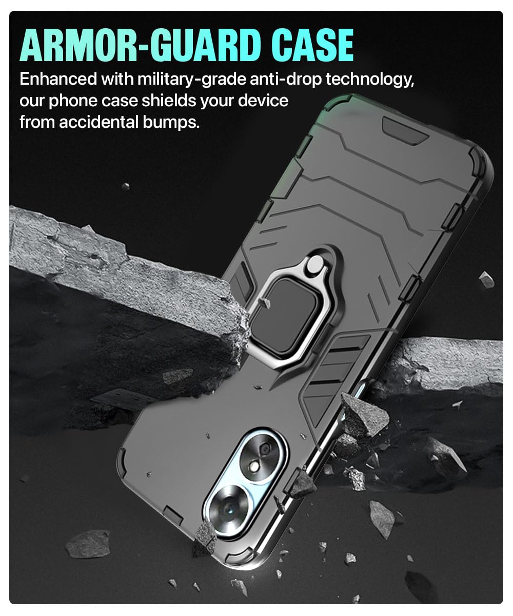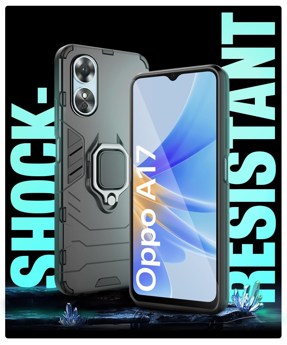 The Shock Proof Back Case Mobile Cover for Oppo A17 | Back Cover Case (Tough Armor | Hybrid PC + TPU | Ring Holder & in-Built Kickstand | Black) is designed with premium quality materials to provide superior protection, durability, and style for your smartphone. It offers a perfect balance between functionality and aesthetics, ensuring your device stays safe from scratches, impacts, and daily wear. Engineered with precision, it features accurate cutouts for ports, buttons, and cameras, making it highly convenient for everyday use. The slim and lightweight design ensures that your device retains its sleek profile without adding unnecessary bulk. Whether it is a nano film tempered glass, a hybrid back case, or a camera lens protector, each product is created with attention to detail to enhance the user experience and extend the life of your smartphone. The material used ensures long-lasting clarity, anti-scratch performance, and resistance against fingerprints and smudges. It is the ideal choice for users who want both style and substance in their smartphone accessories. This product from reflects innovation and craftsmanship, making it a reliable accessory that safeguards your investment while maintaining modern appeal.