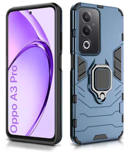 Shock Proof Back Case Mobile Cover for Oppo A3 Pro 5G | Oppo K12x 5G | Back Cover Case (Tough Armor | Hybrid PC + TPU | Ring Holder & in-Built Kickstand | Blue)