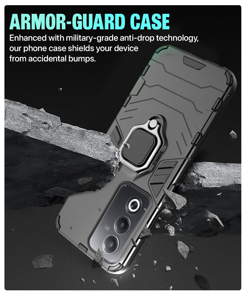 The Shock Proof Back Case Mobile Cover for Oppo A3 Pro 5G | Oppo K12x 5G (Tough Armor | Hybrid PC + TPU | Full Protection with Ring Holder & in-Built Kickstand | Black) is designed with premium quality materials to provide superior protection, durability, and style for your smartphone. It offers a perfect balance between functionality and aesthetics, ensuring your device stays safe from scratches, impacts, and daily wear. Engineered with precision, it features accurate cutouts for ports, buttons, and cameras, making it highly convenient for everyday use. The slim and lightweight design ensures that your device retains its sleek profile without adding unnecessary bulk. Whether it is a nano film tempered glass, a hybrid back case, or a camera lens protector, each product is created with attention to detail to enhance the user experience and extend the life of your smartphone. The material used ensures long-lasting clarity, anti-scratch performance, and resistance against fingerprints and smudges. It is the ideal choice for users who want both style and substance in their smartphone accessories. This product from reflects innovation and craftsmanship, making it a reliable accessory that safeguards your investment while maintaining modern appeal.