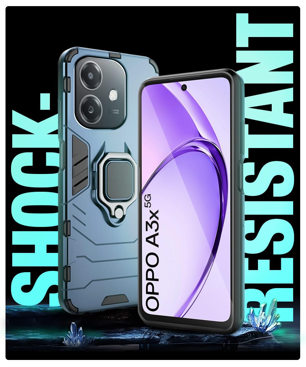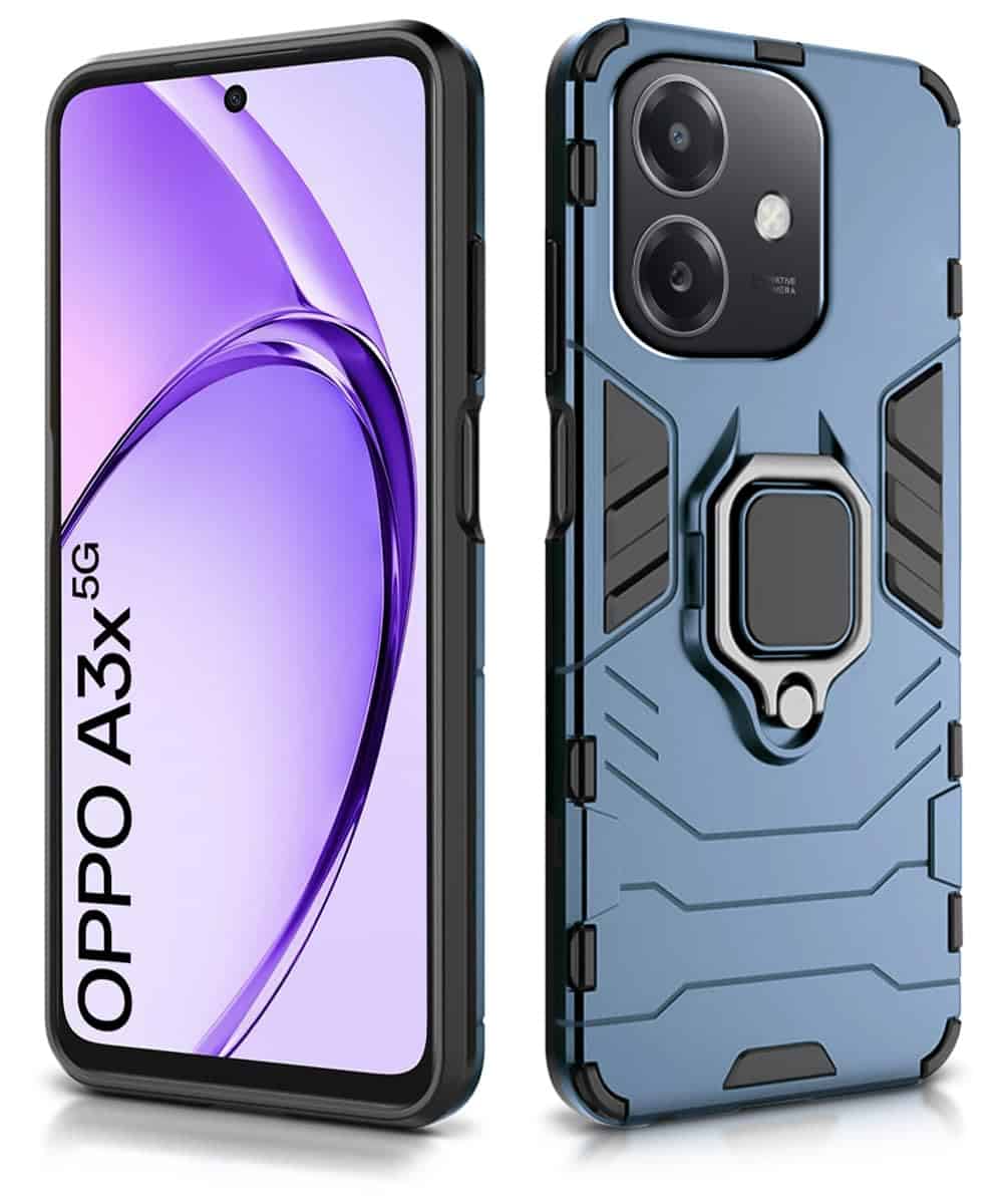 Shock Proof Back Case Mobile Cover for Oppo A3x 5G | A3x 4G | A3 5G | Back Cover Case (Tough Armor | Hybrid PC + TPU | Ring Holder & in-Built Kickstand | Blue)