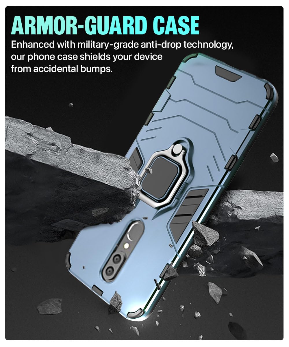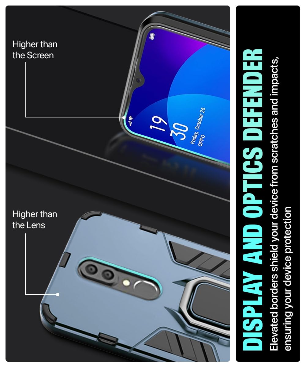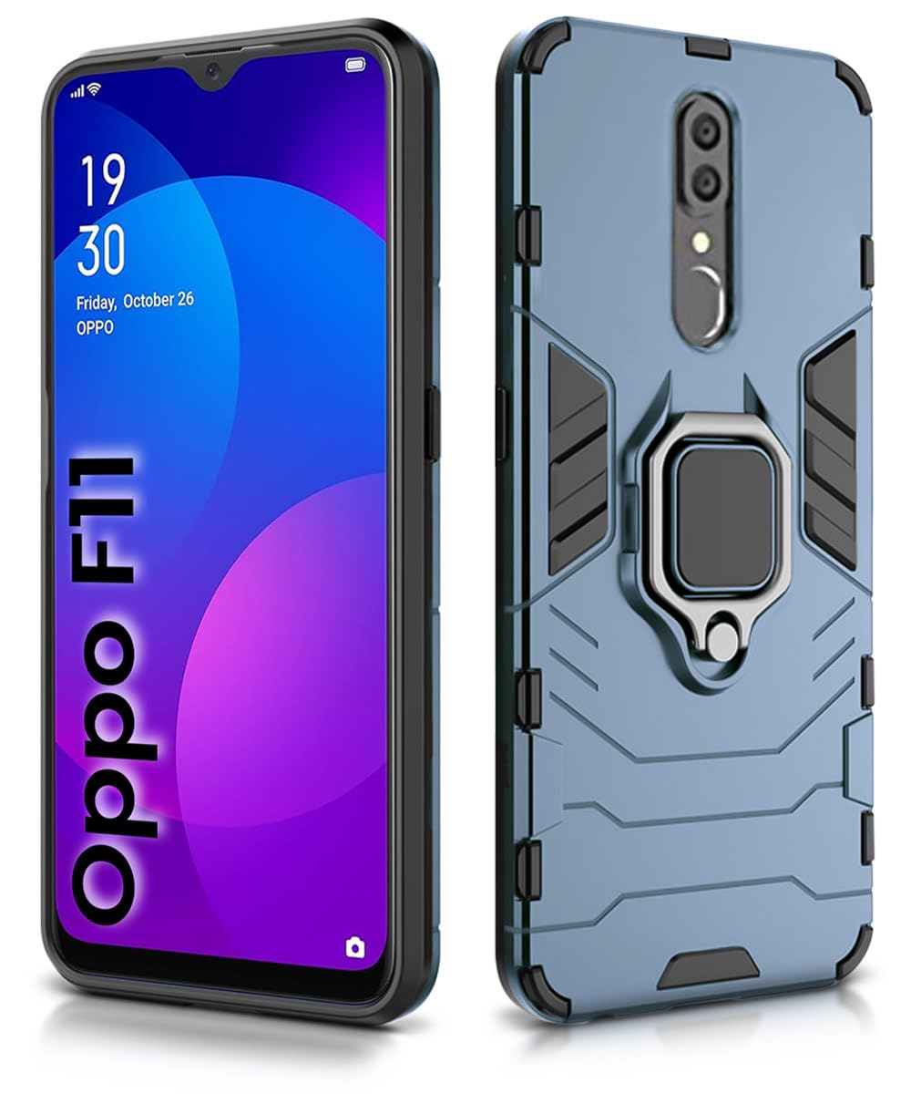 Shock Proof Back Case Mobile Cover for Oppo F11 | Back Cover Case (Tough Armor | Hybrid PC + TPU | Ring Holder & in-Built Kickstand | Blue)
